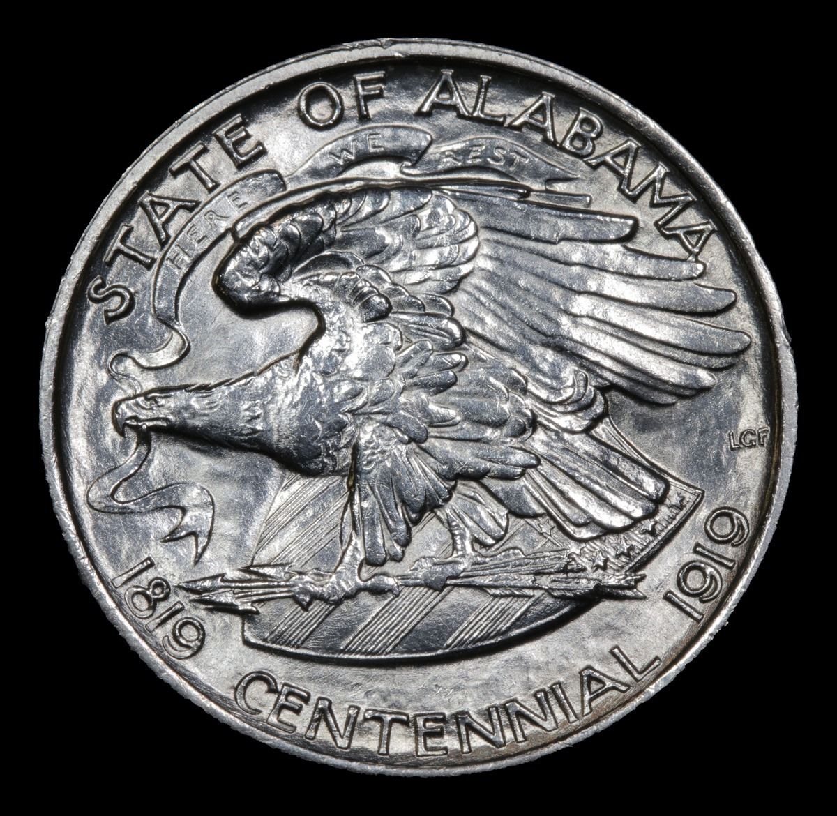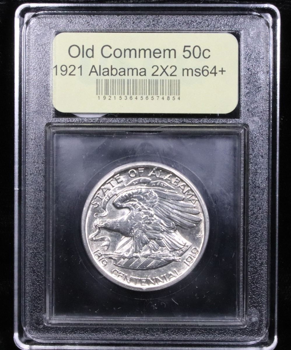 ***Auction Highlight*** 1921 Alabama 2X2 . Very Near Gem Old Commem Half Dollar 50c Graded Choice+ Unc By USCG. Uncirculated Examples will still Posses Luster on the Higher Points of the Design, namely on Kilby’s Upper Ear and on the Eagle’s Breast, Leg and Talons. Wear First Appears on Kilby's Forehead and Cheek and on the Eagle's Neck, Wingtip and Upper Edge of its Wing. Only 10% of the Issue was Made with the 2x2 Mark. A Corey's Pick, Bid to Win, Don't let it get Away Coin