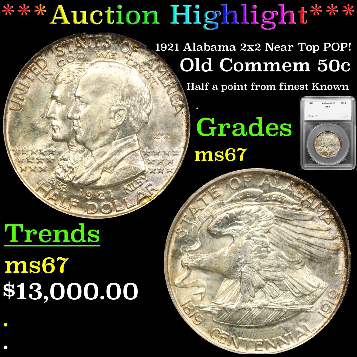 ***Auction Highlight*** 1921 Alabama 2x2 Old Commem Half Dollar Near Top POP! 50c Graded ms67 By SEG
