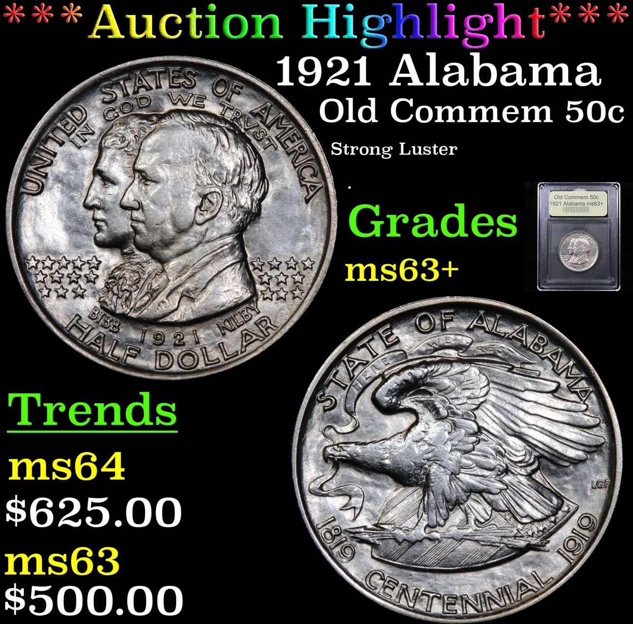***Auction Highlight*** 1921 Alabama Strong Luster . Old Commem Half Dollar 50c Graded Select+ Unc By USCG. This Coin was Largely Distributed to the Public and not to Collectors and saw Great Use during the Great Depression. Wear First Appears on Kilby's Forehead and Cheek and on the Eagle's Neck, Wingtip and Upper Edge of its Wing. A Corey's Pick, Bid to Win Coin