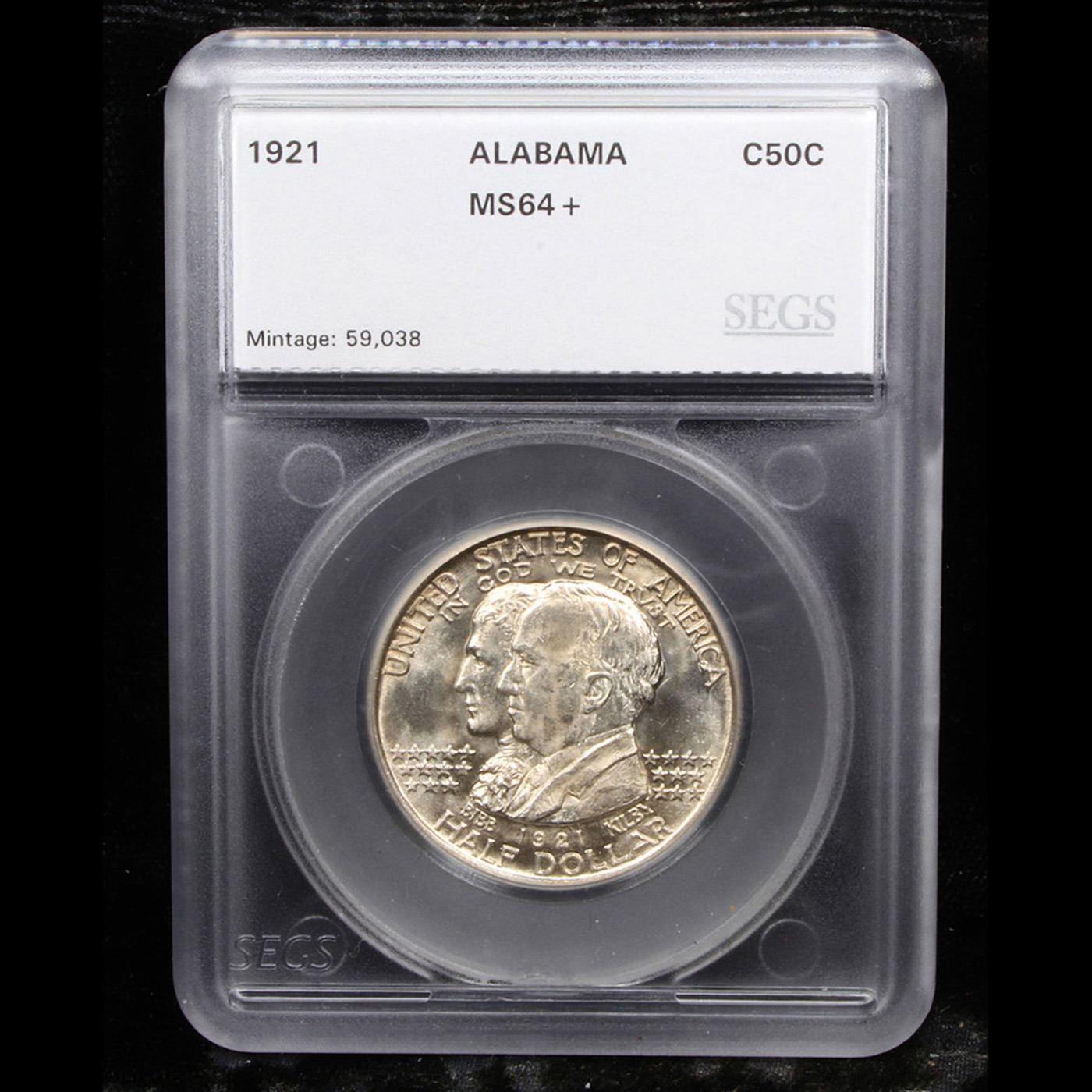 ***Auction Highlight*** 1921 Alabama Old Commem Half Dollar 50c Graded ms64+ By SEGS. This Coin was Largely Distributed to the Public and not to Collectors and saw Great Use during the Great Depression. Wear First Appears on Kilby's Forehead and Cheek and on the Eagle's Neck, Wingtip and Upper Edge of its Wing.