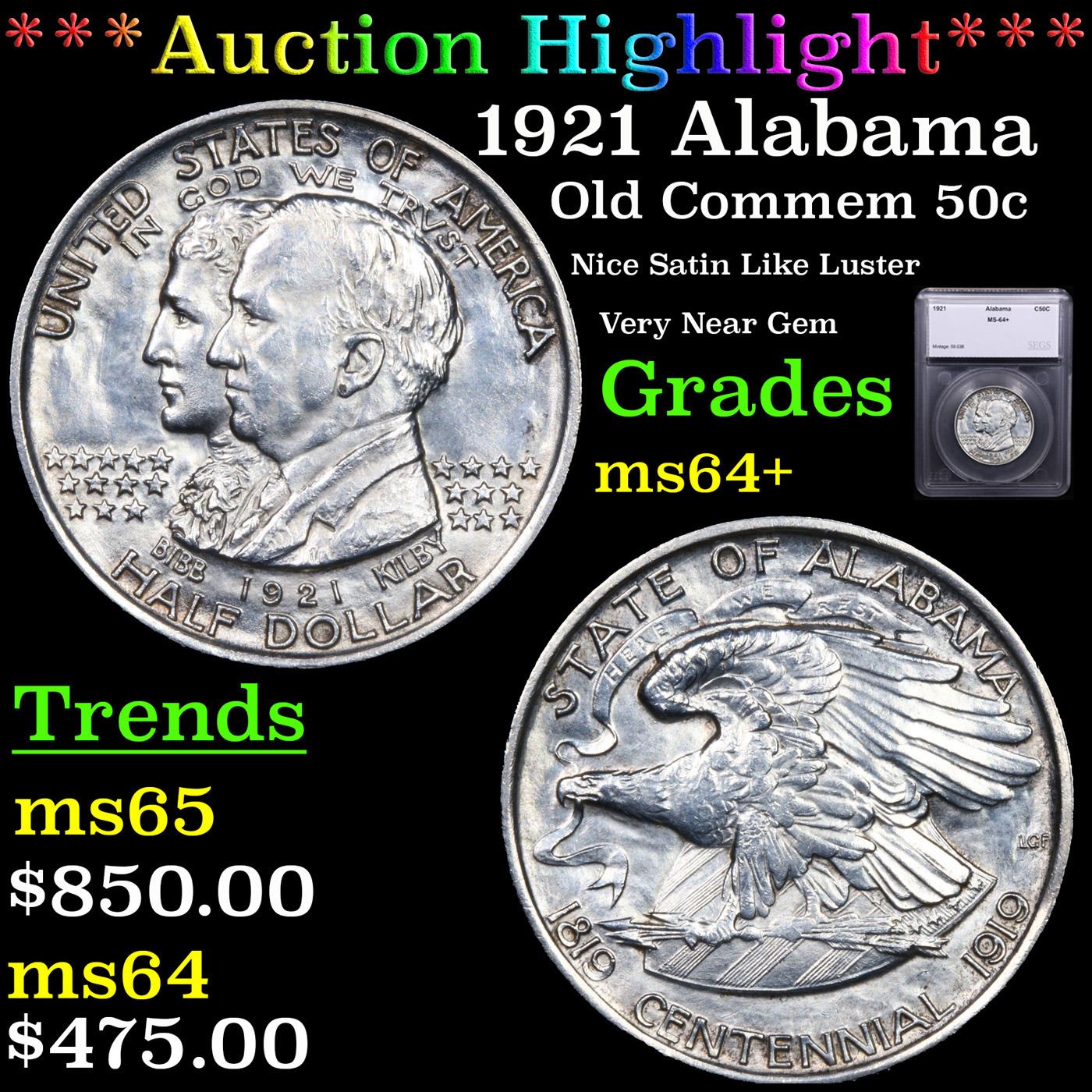 ***Auction Highlight*** 1921 Alabama Old Commem Half Dollar 50c Graded ms64+ By SEGS (fc)