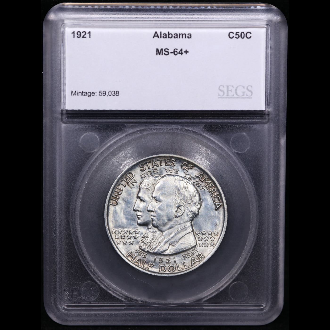 ***Auction Highlight*** 1921 Alabama Old Commem Half Dollar 50c Graded ms64+ By SEGS. This Coin was Largely Distributed to the Public and not to Collectors and saw Great Use during the Great Depression. Wear First Appears on Kilby's Forehead and Cheek and on the Eagle's Neck, Wingtip and Upper Edge of its Wing. A Key Date's Pick, Bid to Win, Don't let it get Away Coin