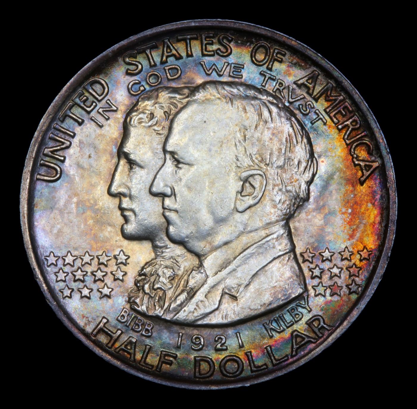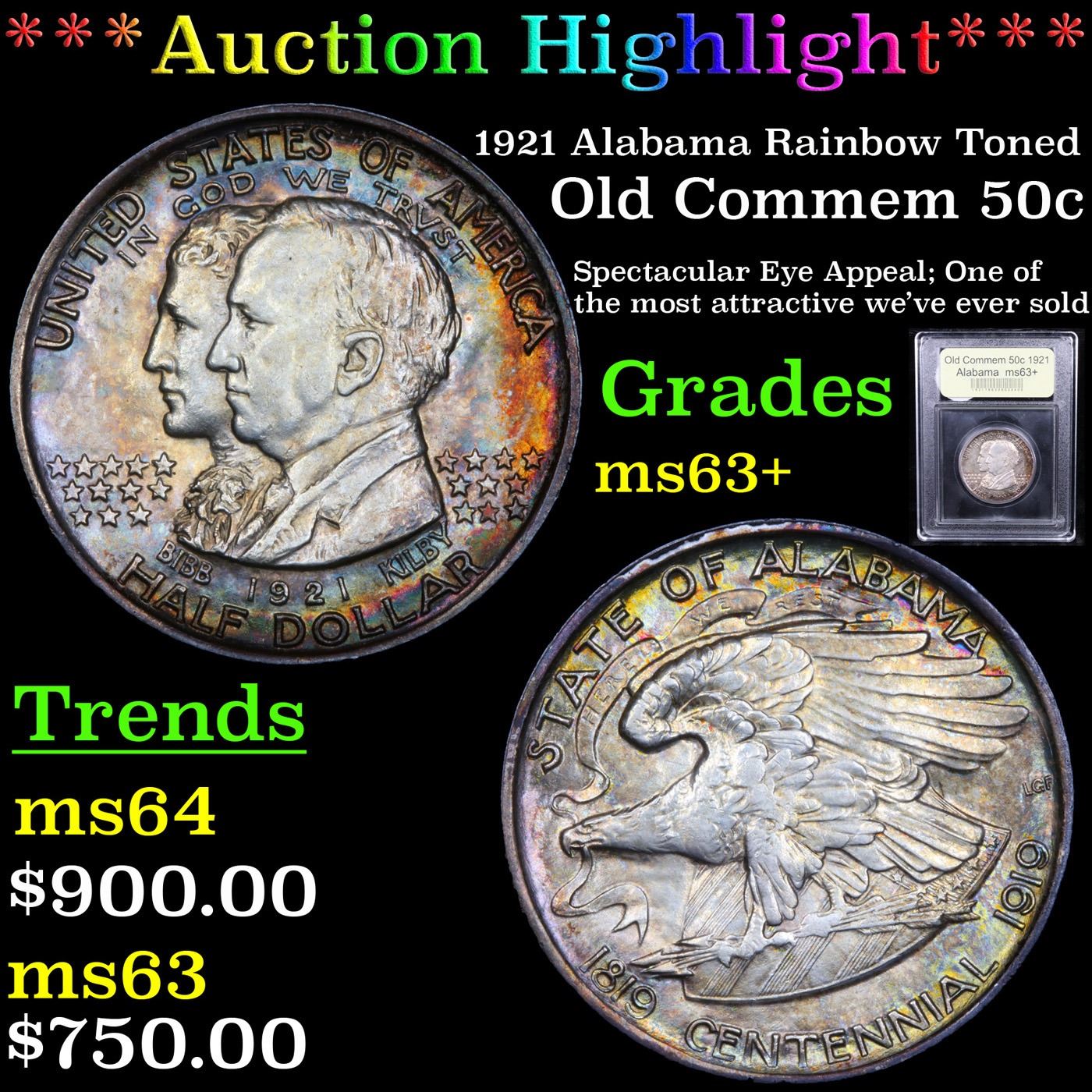 ***Auction Highlight*** 1921 Alabama Rainbow Toned Old Commem Half Dollar 50c Graded Select+ Unc BY