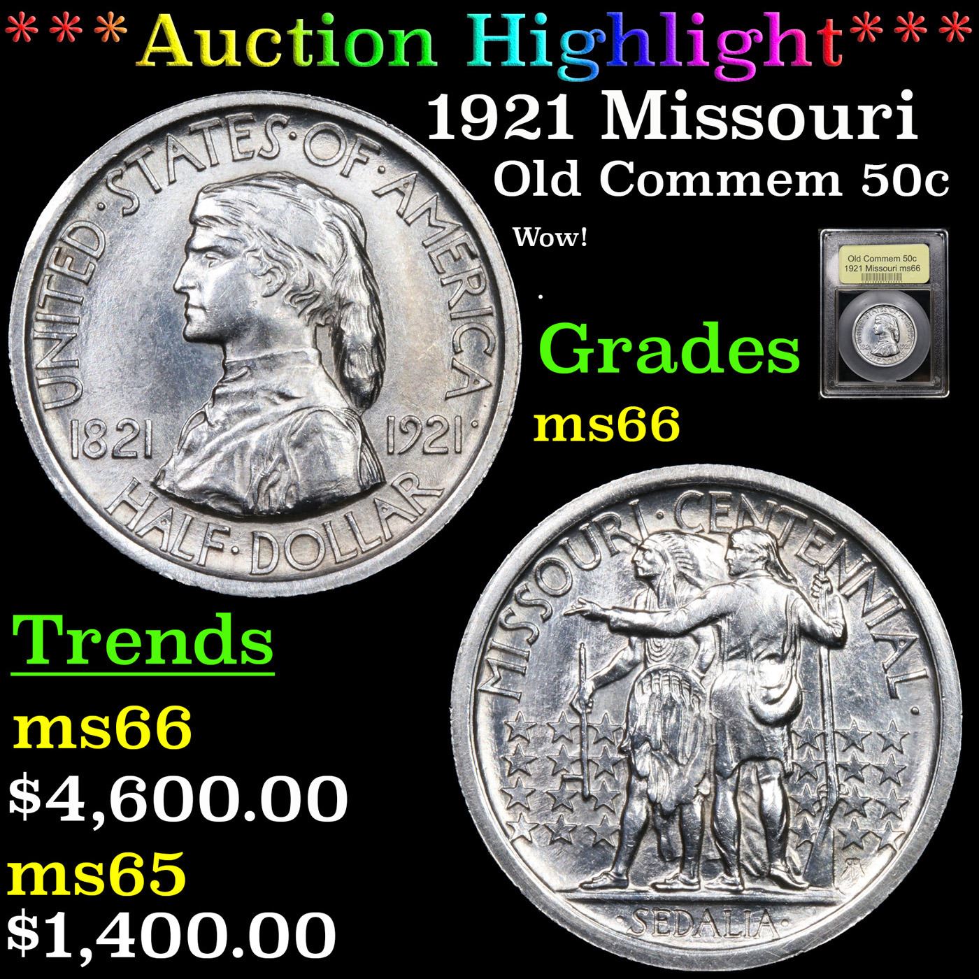 ***Auction Highlight*** 1921 Missouri Old Commem Half Dollar 50c Graded GEM+ Unc BY USCG (fc)