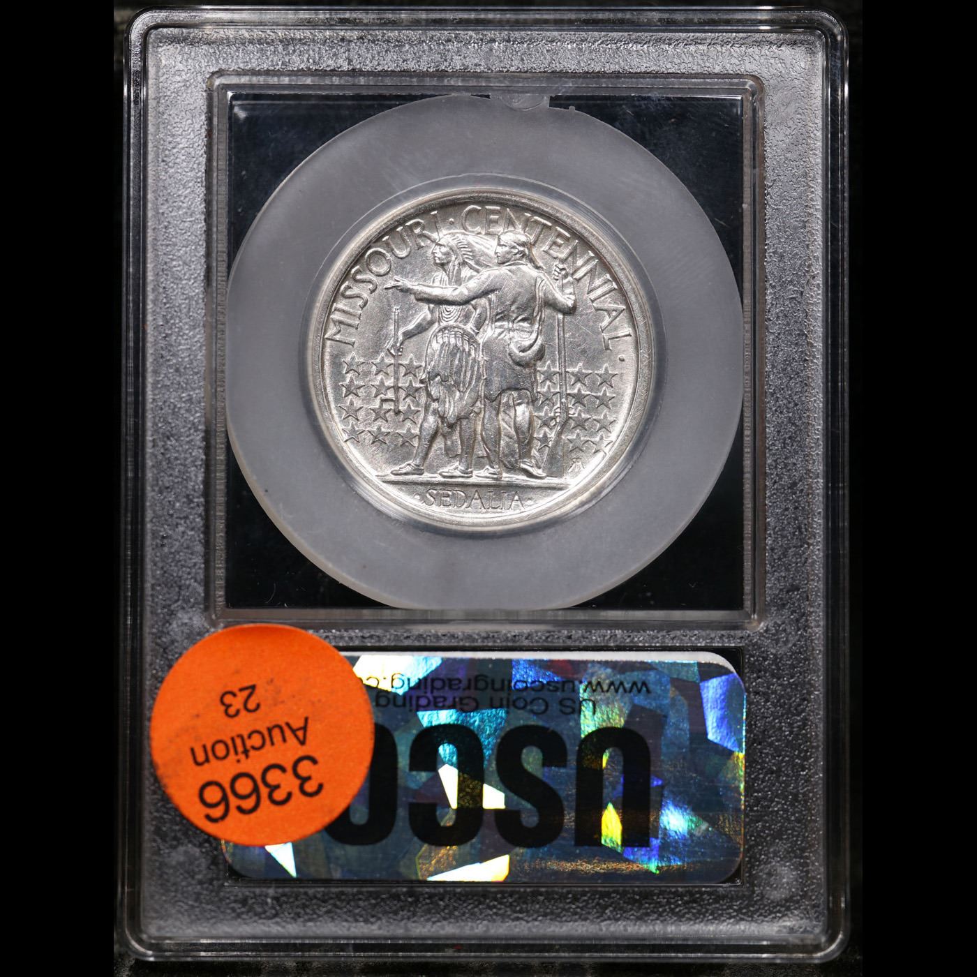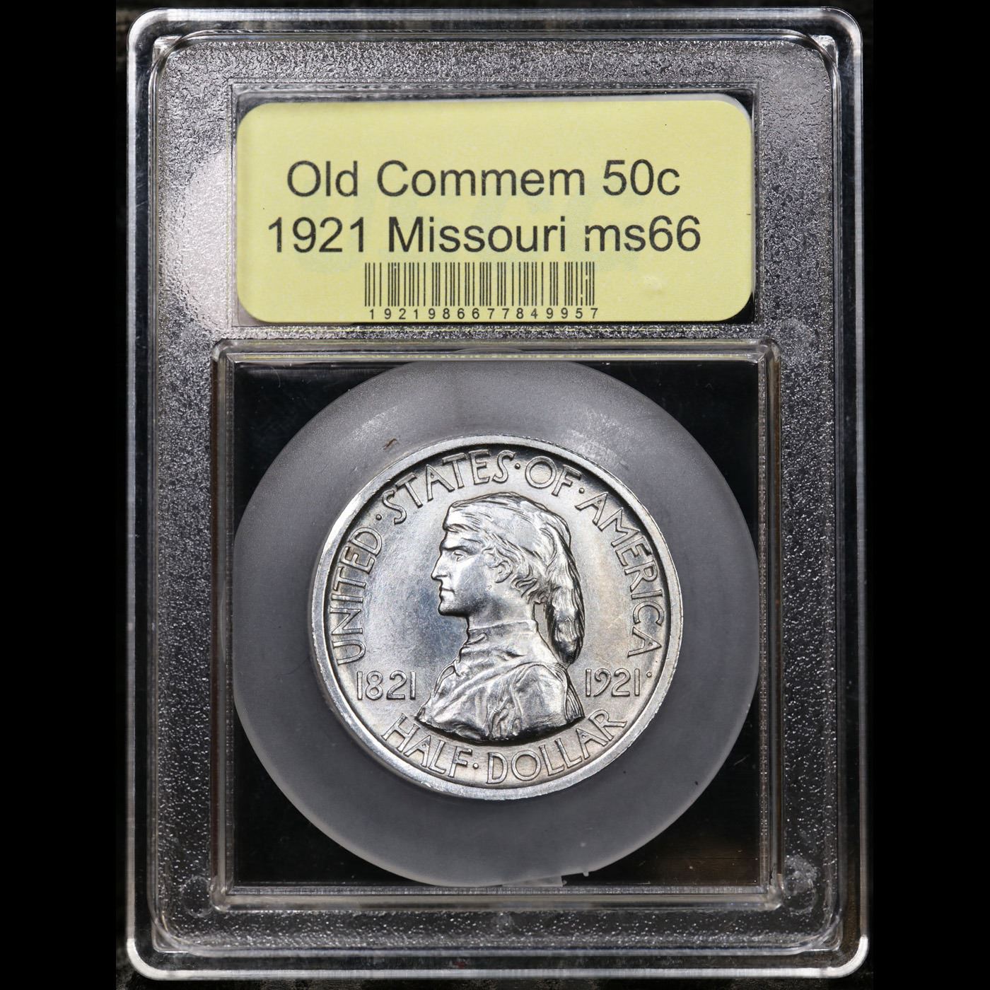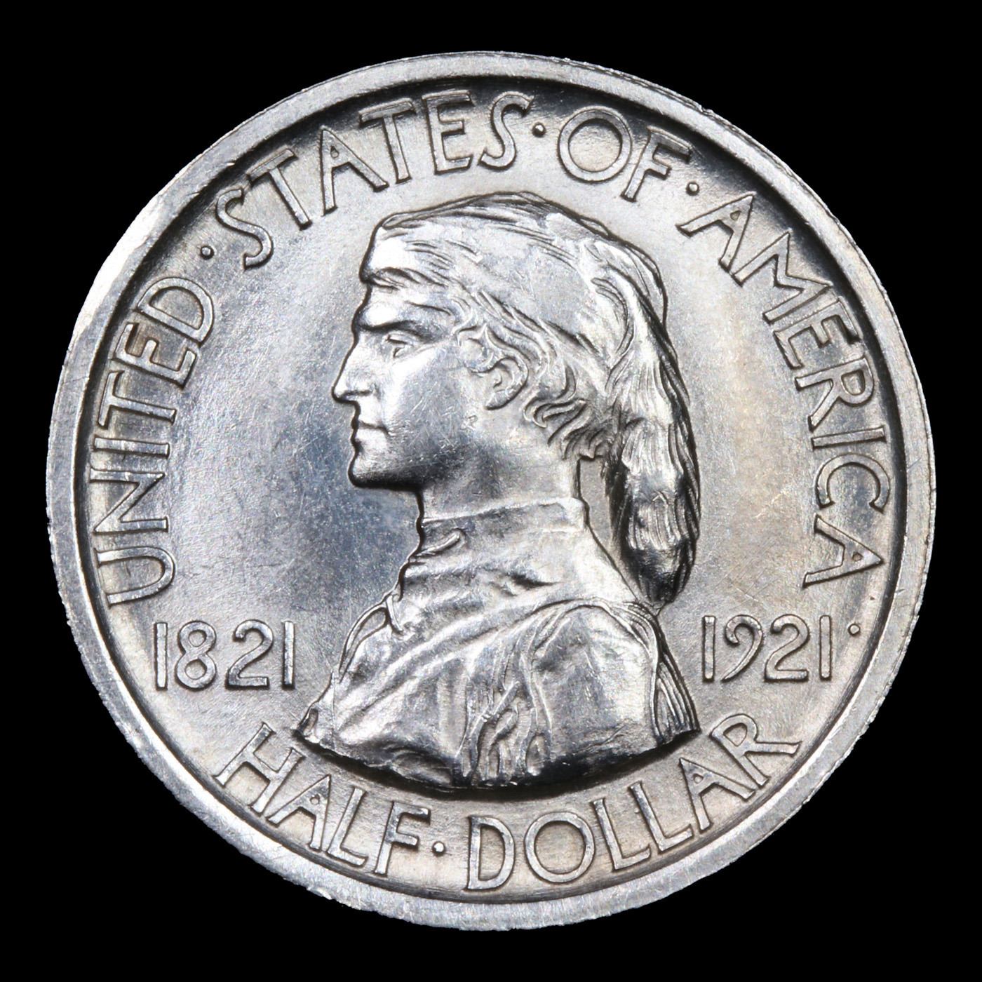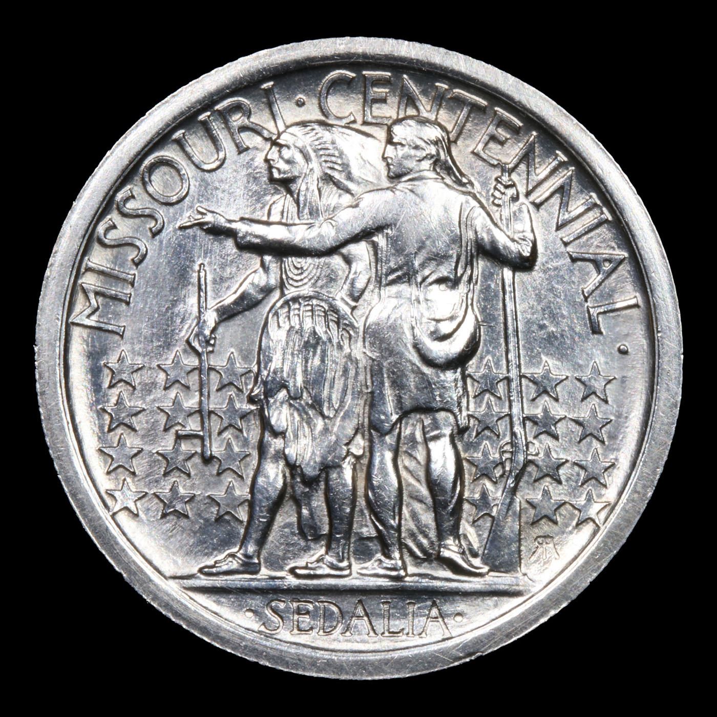 ***Auction Highlight*** 1921 Missouri Old Commem Half Dollar 50c Graded GEM+ Unc BY USCG. The Missouri Centennial Half Dollar was authorized to mark the 100th anniversary of the admission of Missouri to the Union. It represented an interesting commemorative issue since it was minted in two different varieties, a tactic that would be repeated for some subsequent coins.Authorization called for production of up to 250,000 of the silver half dollars. The coins would be released at the Missouri Centennial Exposition and State Fair held in August 1921 at the state capital Sedalia. The original cost was $1 per coin with distribution through the Sedalia Trust Company.At the request of the Chairman of the exposition, a certain number of 1921 Missouri Centennial Half Dollars were minted with “2*4” (2 Star 4) on the obverse to signify admission as the 24th state in the Union. He requested that the first 5,000 pieces carrying special marking, which be believed would make the coins more marketable. Research suggests that 10,000 pieces were struck with the marking.The obverse design of the Missouri Centennial Half Dollar features a bust of Daniel Boone, wearing his well known coon-skin cap. The reverse design features a scene of Daniel Boone standing with a Native American against a background of stars. Boone holds a power horn and rifle and points westward. The designer of the coin was Robert Aitken, a medalist and sculptor who had previously designed the 1915 Panama Pacific $50 Gold Piece.The final mintages for the 1921 Missouri Half Dollar net of melting is estimated to be 9,400 of the coins including “2*4” in the field and 11,400 of the coins without the marking. Although intended to be a scarce variety, availability of the “2*4” is only slightly less than the plain version due to the overall low mintage of the issue.When examining a Missouri Centennial for wear, on the obverse, friction first shows on Boone's cheek and on the hair behind his ear and shoulder. On the reverse, rub is first evident on the arm of the frontiersman. Scarce and very rare commemorative. A Key Date's Pick, Bid to Win Coin