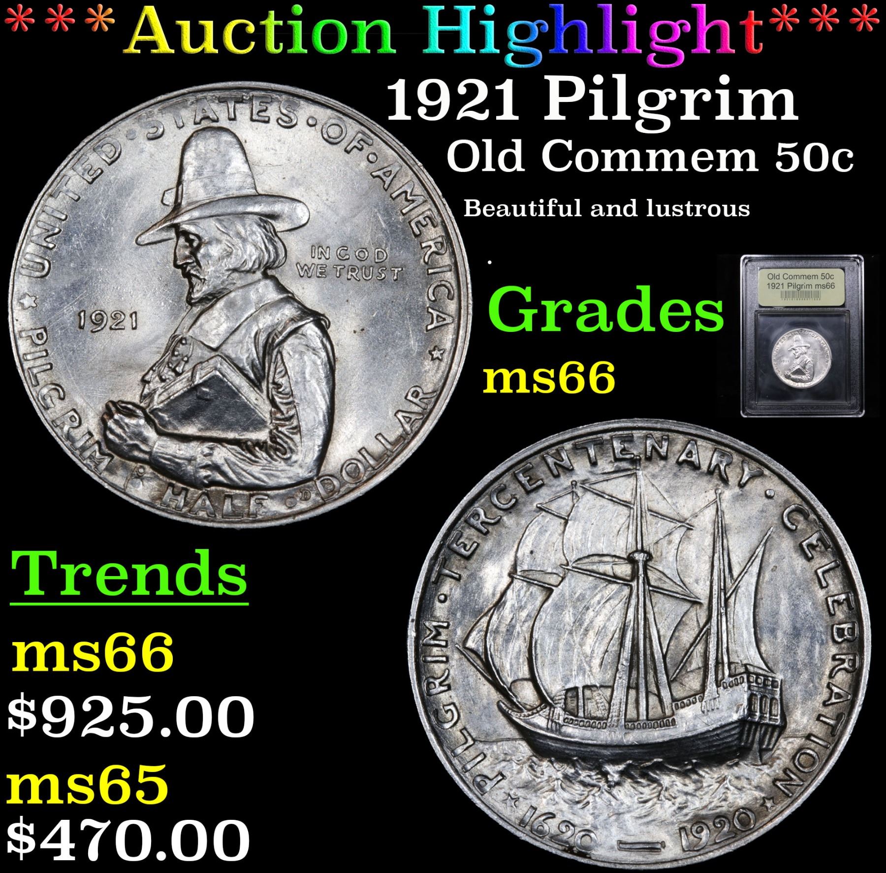 ***Auction Highlight*** 1921 Pilgrim Old Commem Half Dollar 50c Graded GEM+ Unc By USCG (fc)