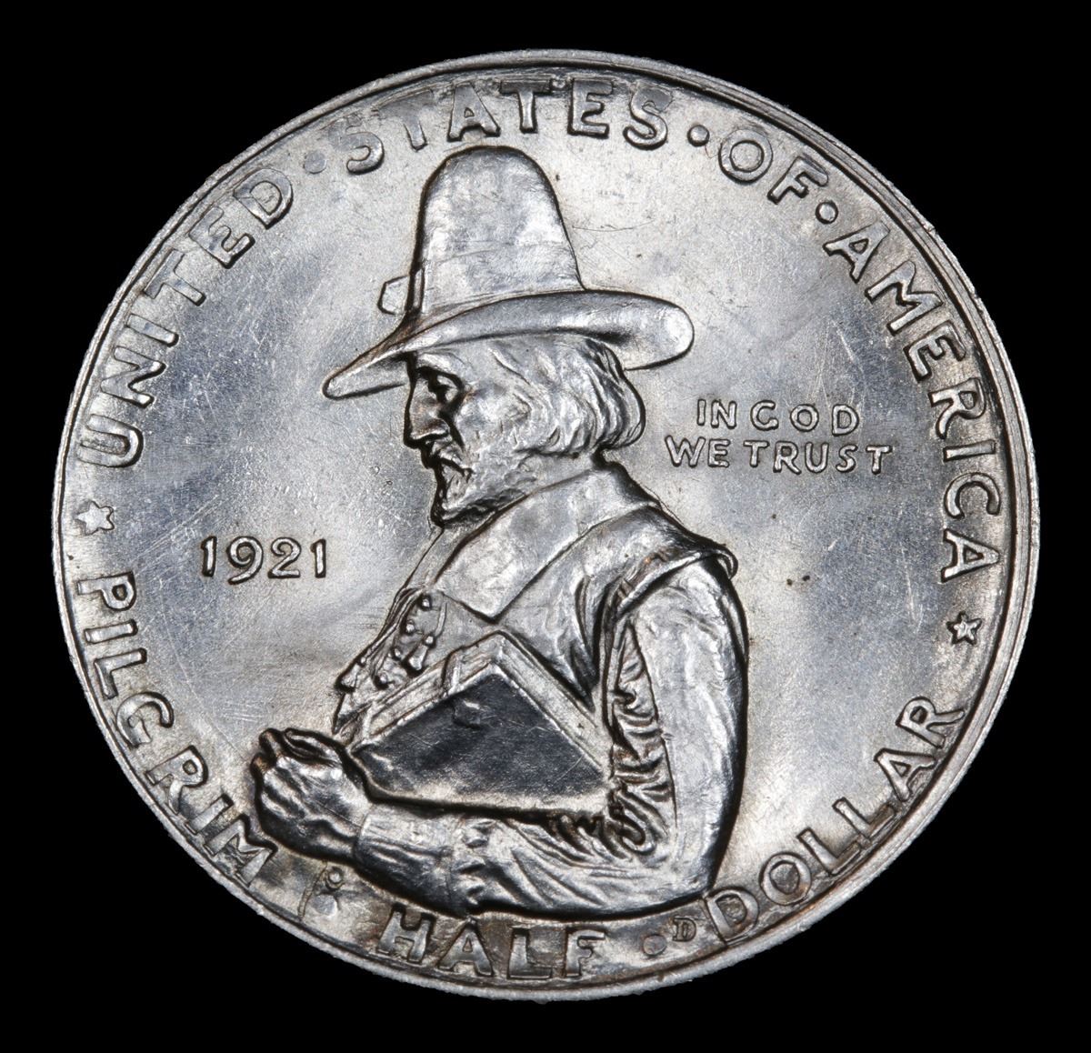 ***Auction Highlight*** 1921 Pilgrim Beautiful and lustrous . Old Commem Half Dollar 50c Graded GEM+ Unc By USCG. When Examining a 1921 Pilgrim, Look for Wear on the Crow's Nest and on the Cheek Bone on the Obverse as these are the High Points. Beautiful and lustrous example of the hard to find 1921 Pilgrim. Per David Hall pf PCGS: “The Pilgrim commemorative half dollars were struck for in two years, 1920 and 1921. The final distribution figures for the 1921 were considerably less than the 1920; 152,112 for the 1920, and only 20,053 for the 1921. According to Dave Bowers, the 1921 was the first commemorative "variety" "specifically created to increase sales to collectors."