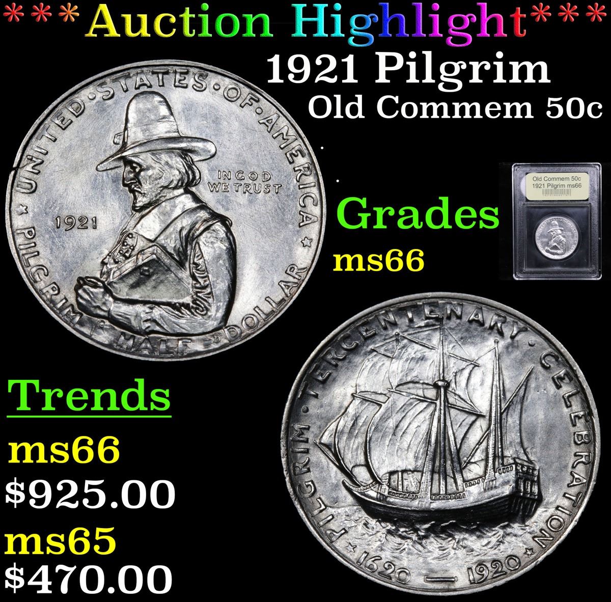 ***Auction Highlight*** 1921 Pilgrim Old Commem Half Dollar 50c Graded GEM+ Unc By USCG (fc)