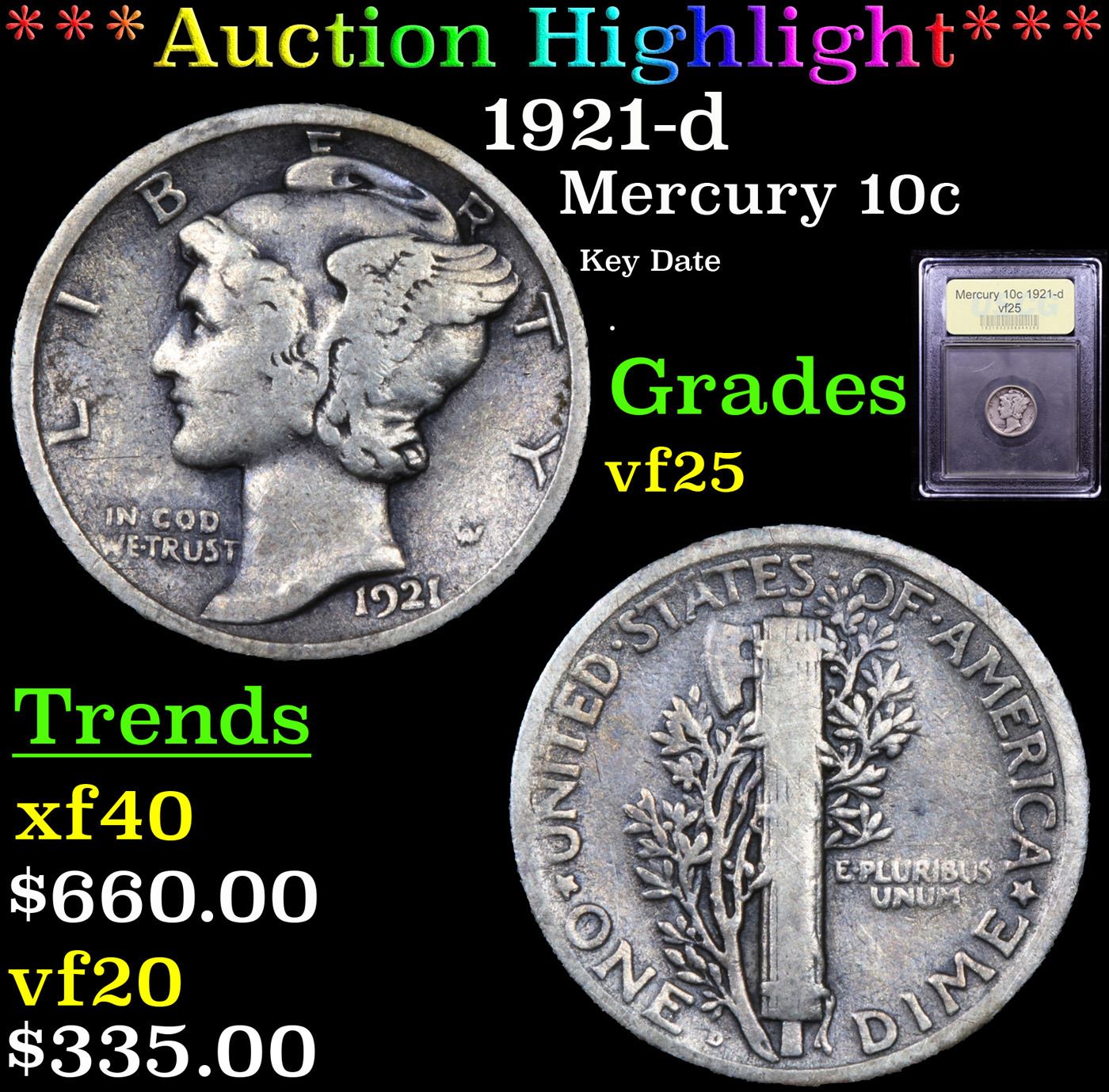 ***Auction Highlight*** 1921-d Mercury Dime 10c Graded vf+ By USCG. A Corey's Pick, Bid to Win Coin
