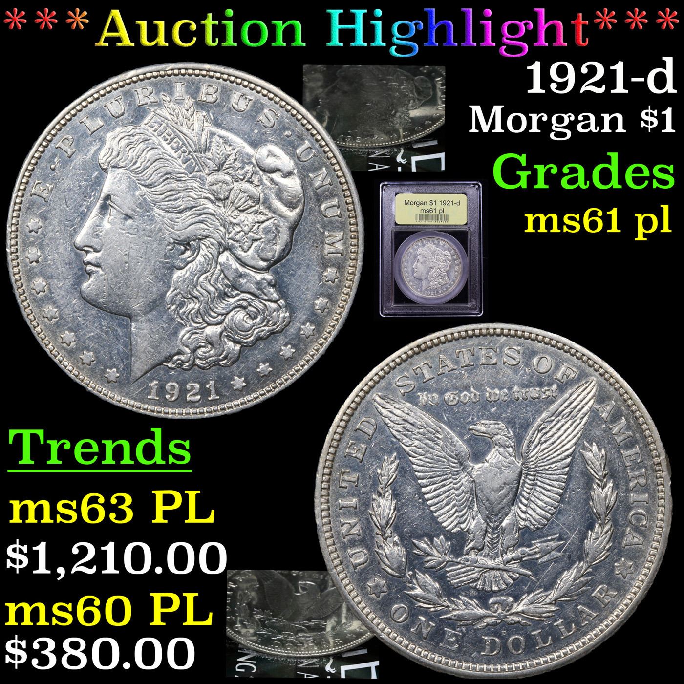 ***Auction Highlight*** 1921-d Morgan Dollar $1 Graded Unc+ PL By USCG.