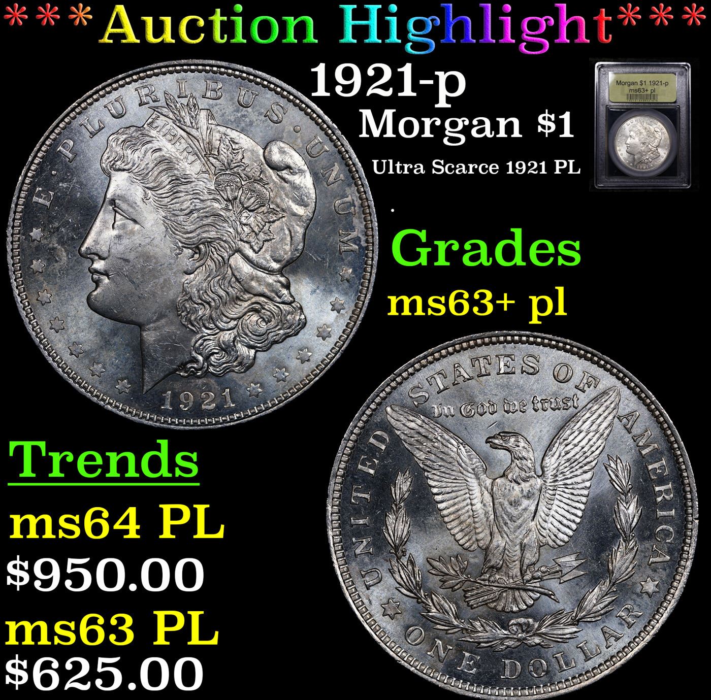 ***Auction Highlight*** 1921-p Morgan Dollar $1 Graded Select Unc+ PL BY USCG.