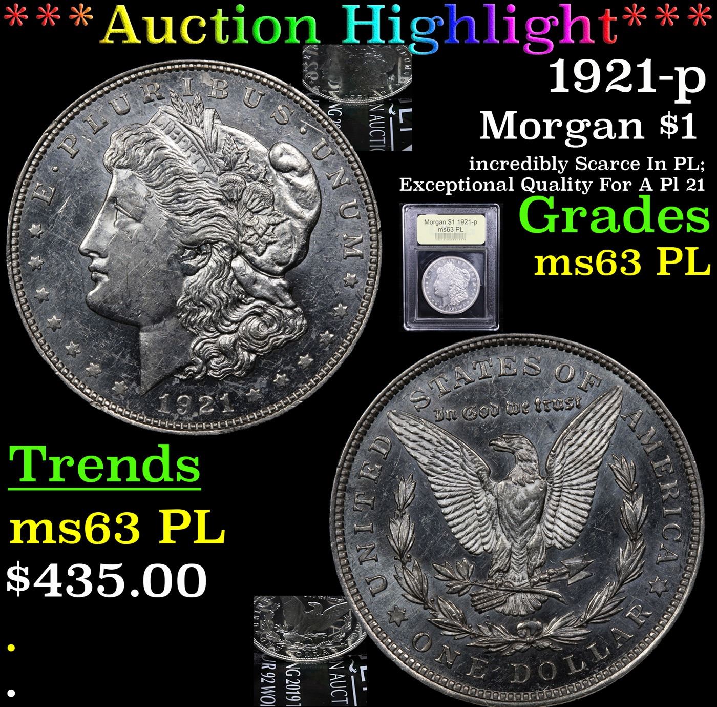 ***Auction Highlight*** 1921-p Morgan Dollar $1 Graded Select Unc PL By USCG. 0