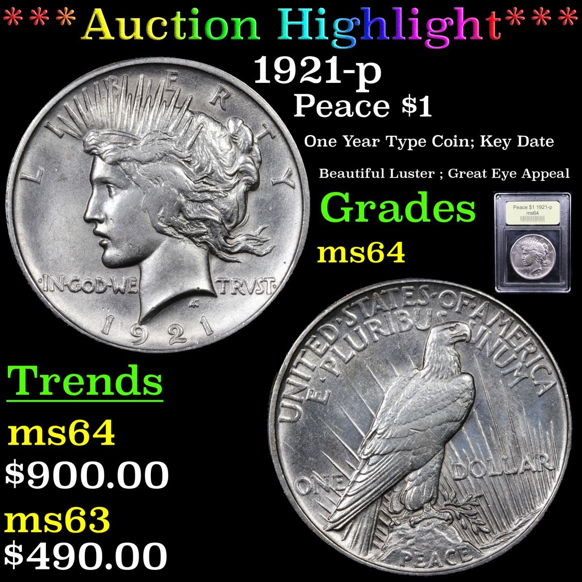 ***Auction Highlight*** 1921-p Peace Dollar $1 Graded Choice Unc By USCG. A Corey's Pick, Bid to Win Coin