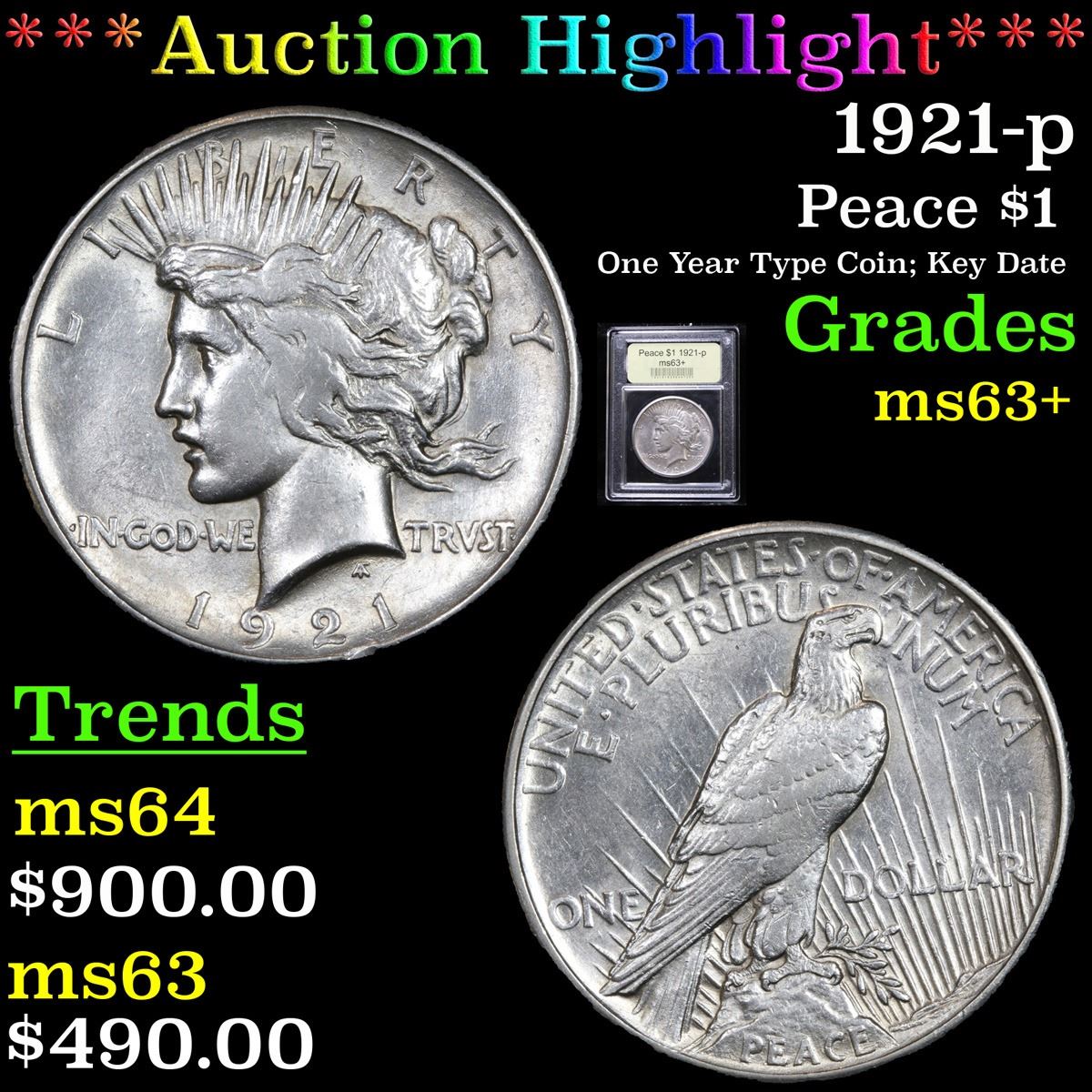***Auction Highlight*** 1921-p One Year Type Coin; Key Date . Peace Dollar $1 Graded Select+ Unc By USCG. A Corey's Pick, Bid to Win, Don't let it get Away Coin