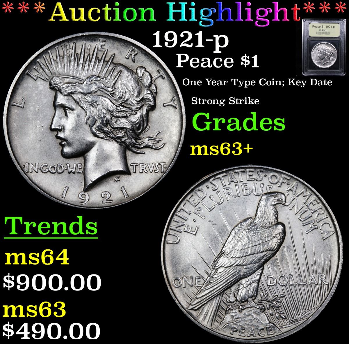 ***Auction Highlight*** 1921-p Peace Dollar $1 Graded Select+ Unc By USCG. A Corey's Pick, Bid to Win Coin