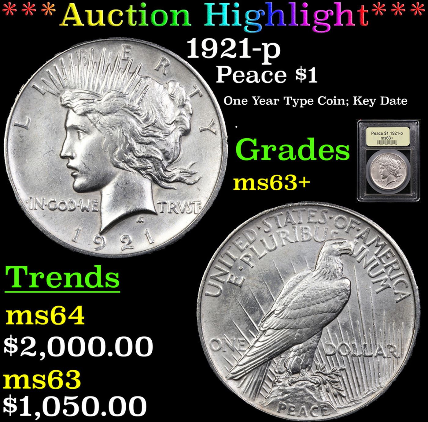 ***Auction Highlight*** 1921-p Peace Dollar $1 Graded Select+ Unc By USCG.