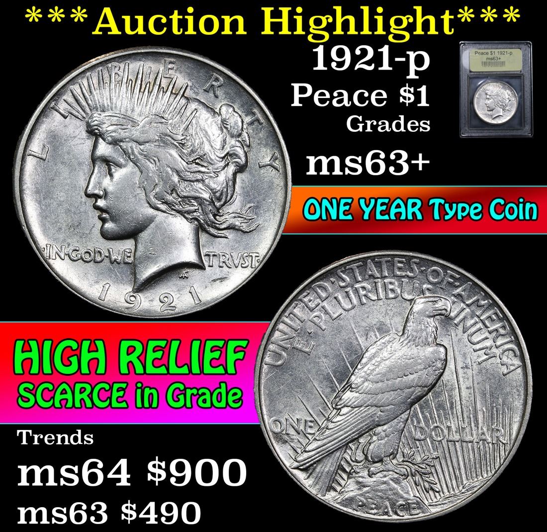 ***Auction Highlight*** 1921-p Peace Dollar $1 Graded Select+ Unc by USCG.