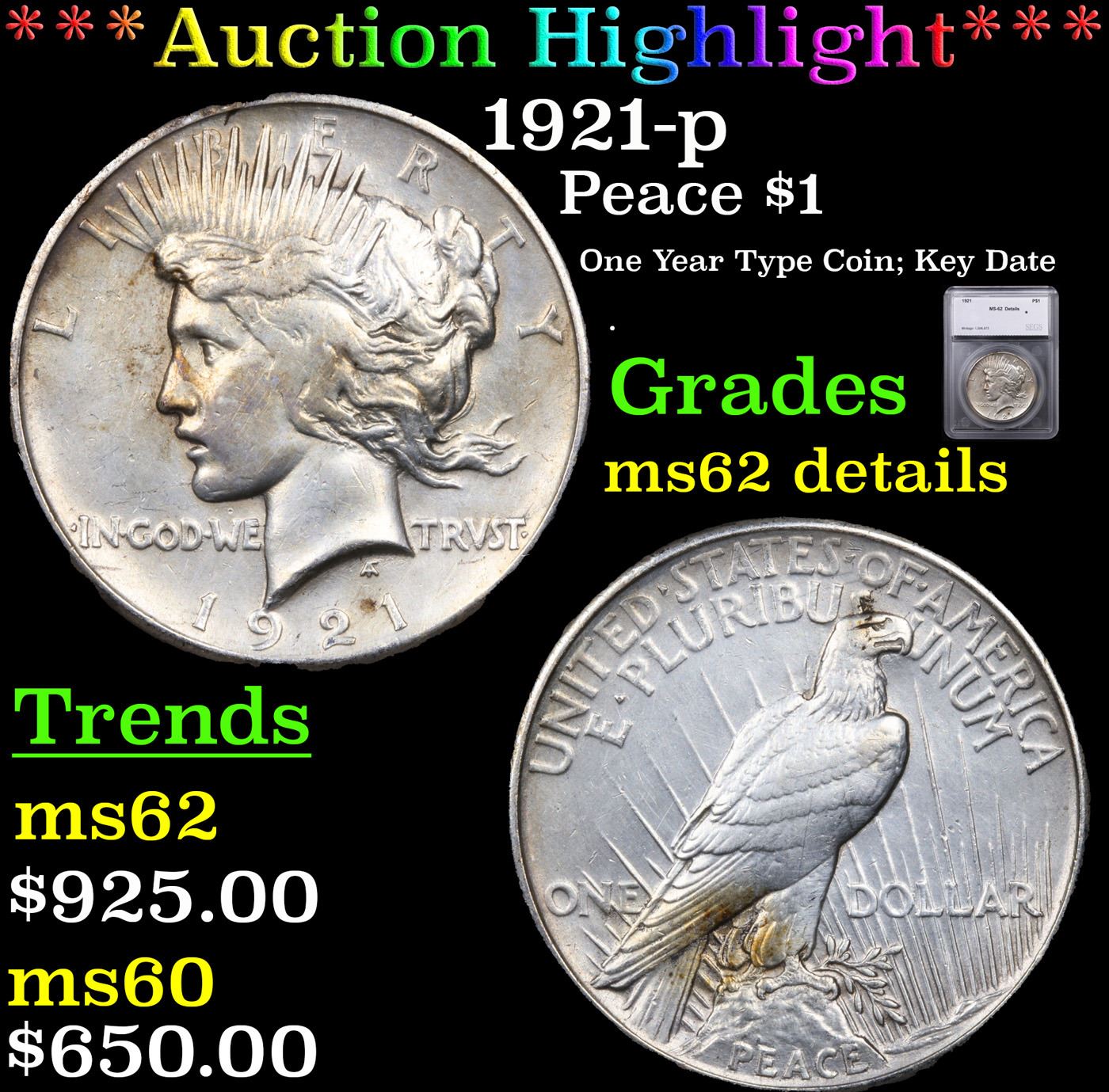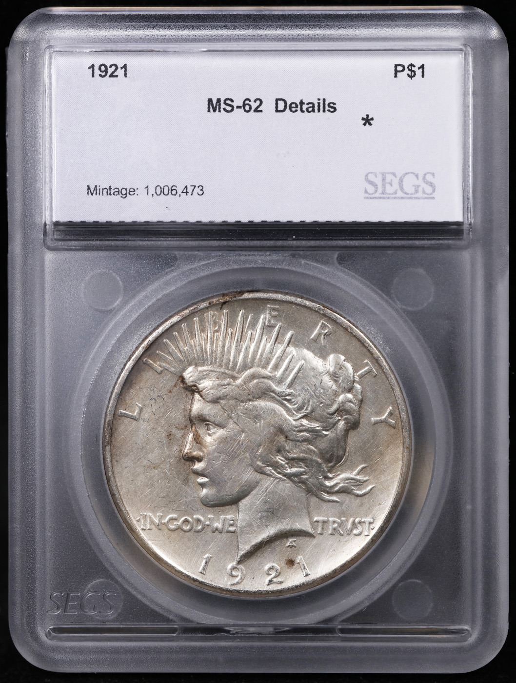 ***Auction Highlight*** 1921-p Peace Dollar $1 Graded ms62 details BY SEGS.