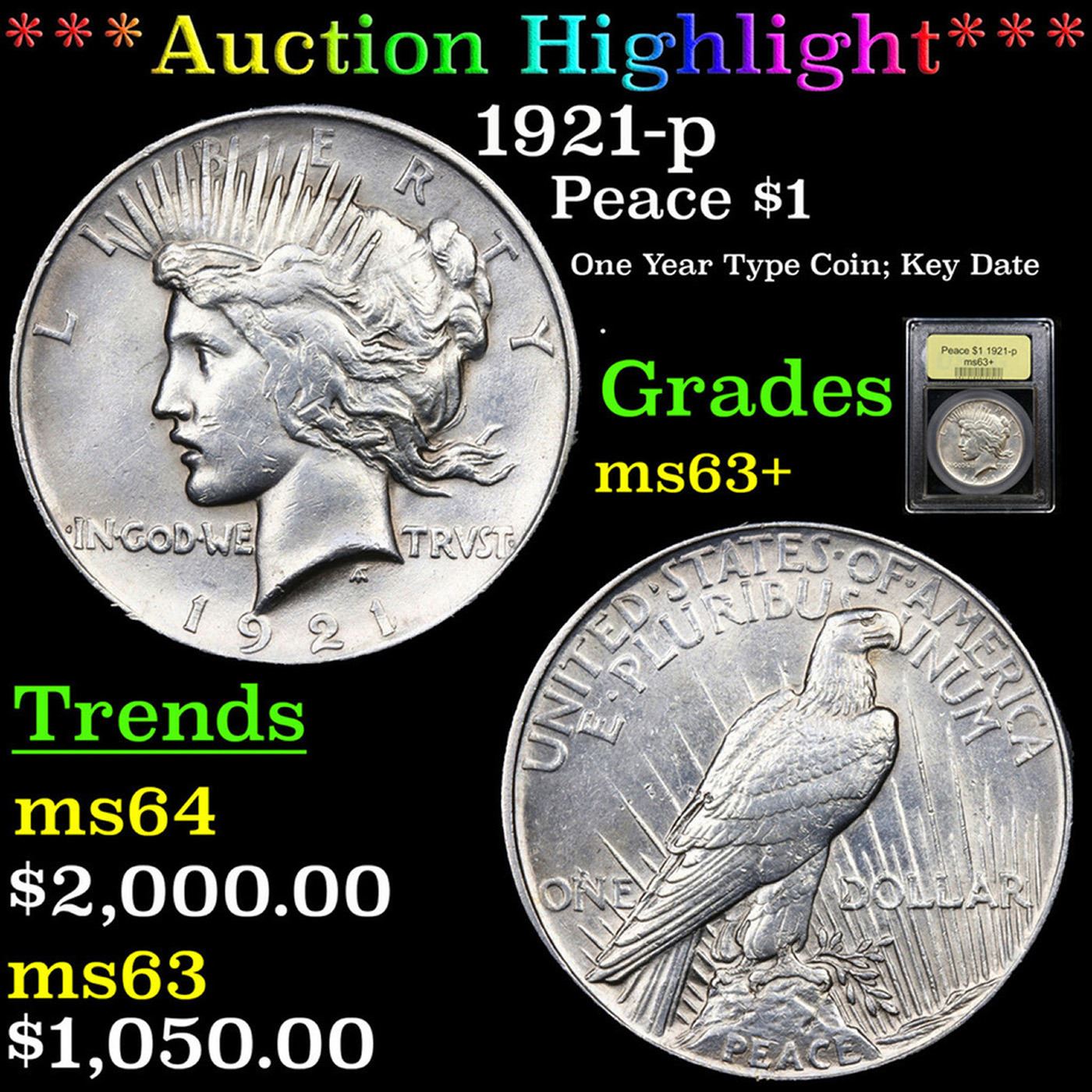 ***Auction Highlight*** 1921-p Peace Dollar $1 Grades Select+ Unc By USCG. A Key Date's Pick, Bid to Win, Don't let it get Away Coin