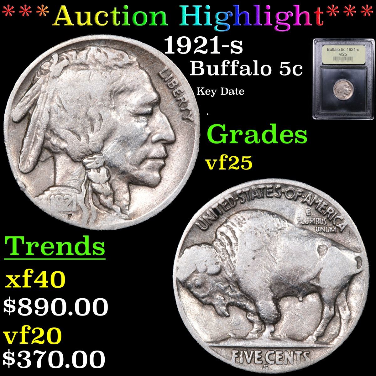 ***Auction Highlight*** 1921-s Key Date . Buffalo Nickel 5c Graded vf+ By USCG. A Corey's Pick, Bid to Win Coin