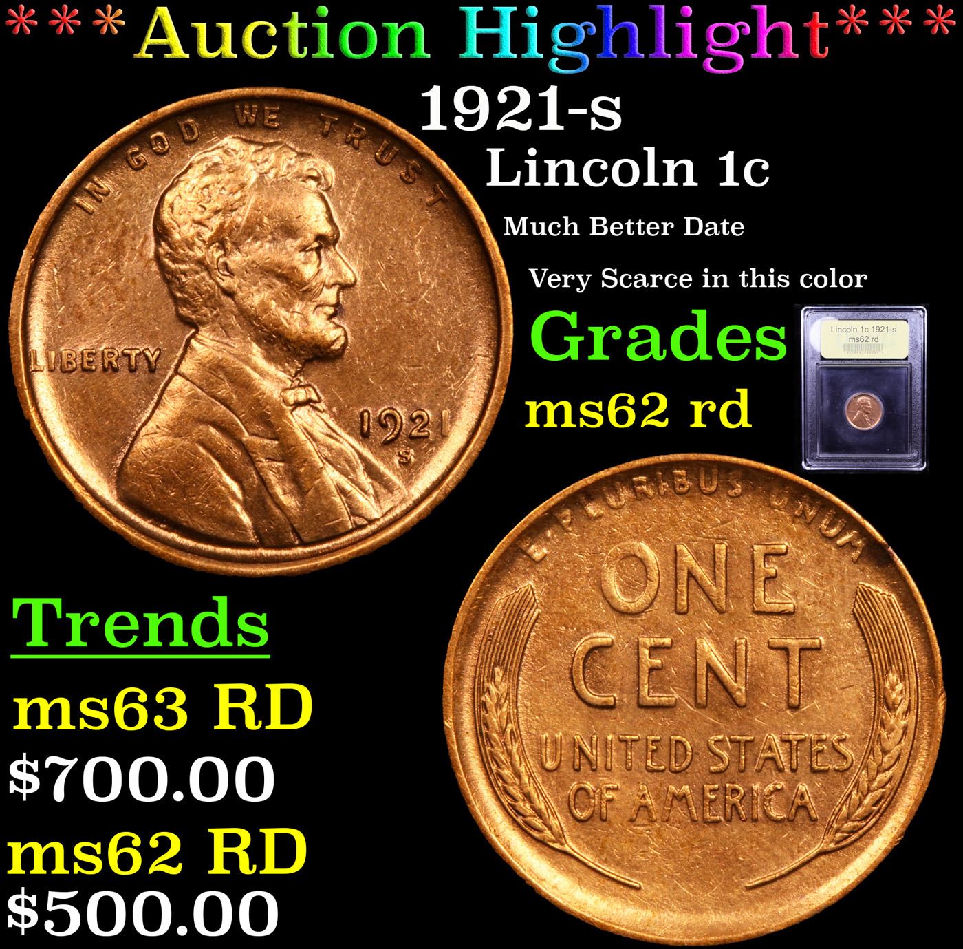 ***Auction Highlight*** 1921-s Lincoln Cent 1c Graded Select Unc RD By USCG. A Corey's Pick, Bid to Win Coin