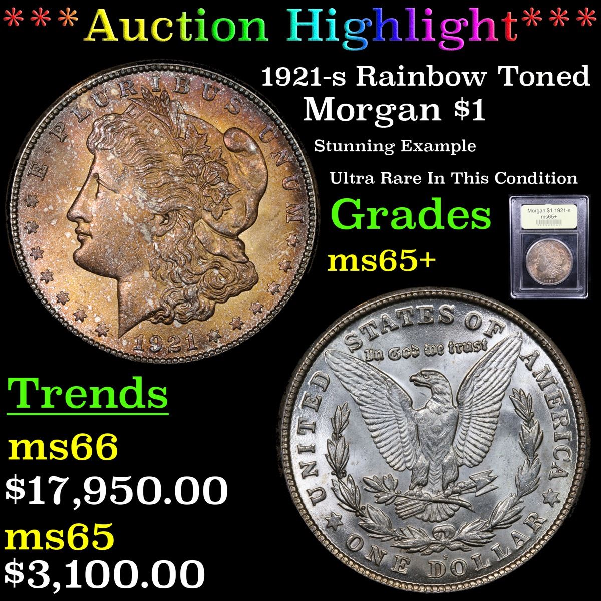 ***Auction Highlight*** 1921-s Rainbow Toned Morgan Dollar $1 Graded GEM+ Unc By USCG. A Corey's Pick, Bid to Win, Don't let it get Away, you might not find its equal Coin. I give this coin my highest recommendation