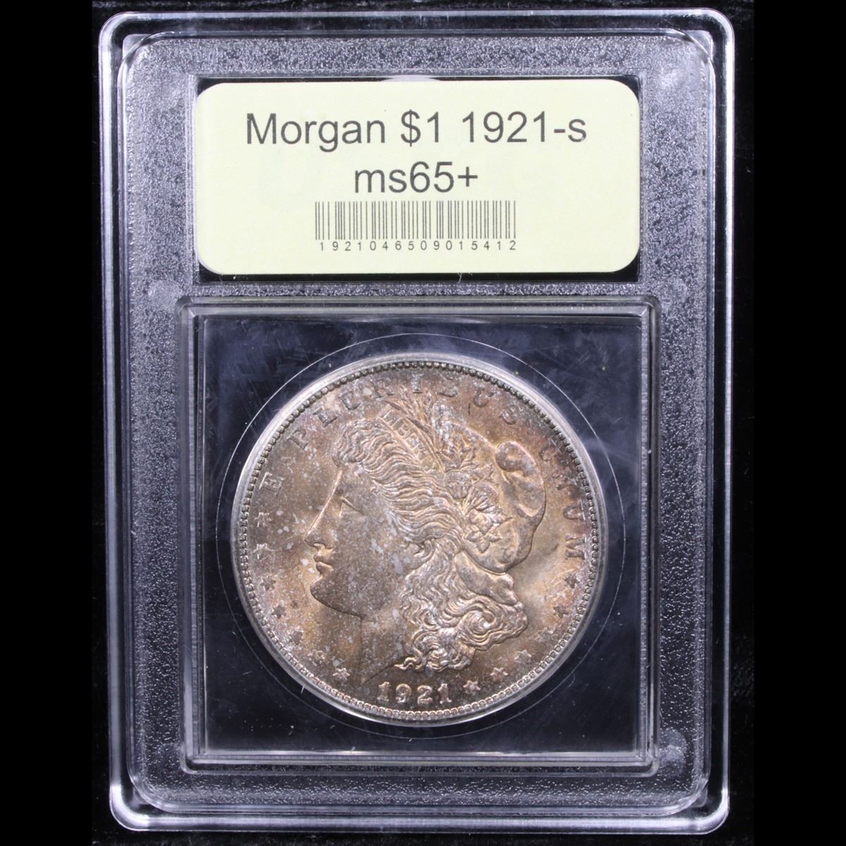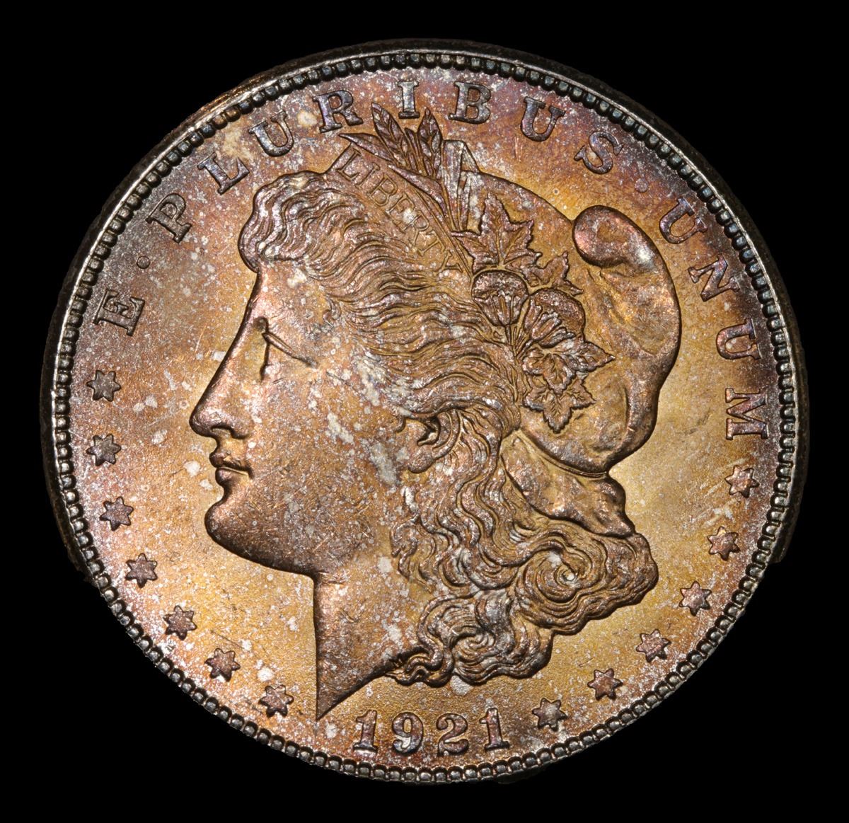 ***Auction Highlight*** 1921-s Rainbow Toned Morgan Dollar $1 Graded GEM+ Unc By USCG (fc)