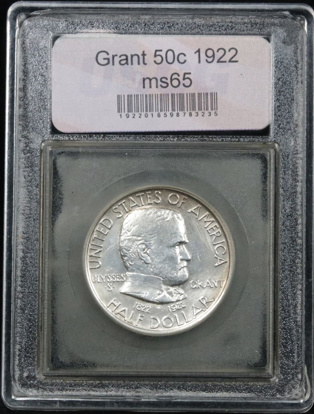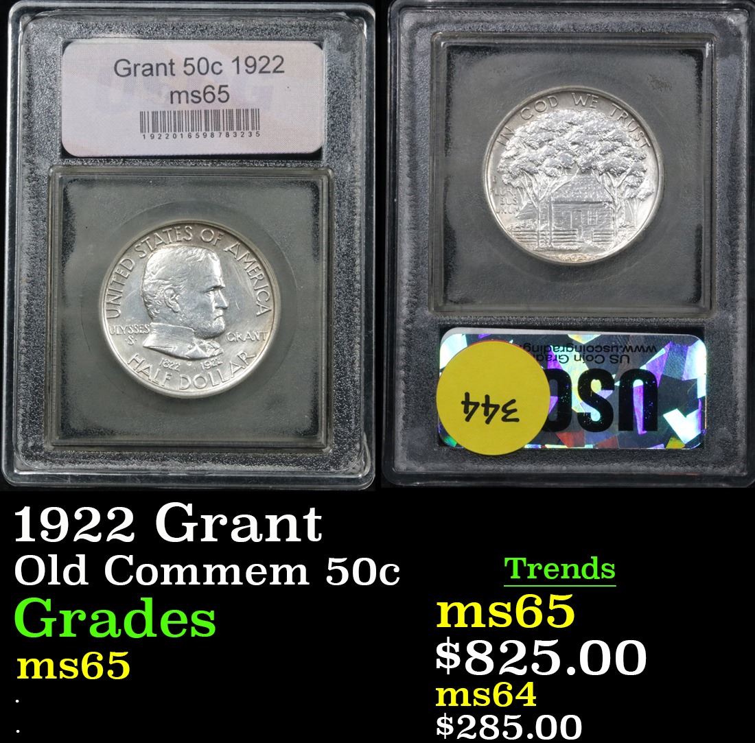 ***Auction Highlight*** 1922 Grant Old Commem Half Dollar 50c Graded GEM Unc By USCG. This is one of the Most Liked Commemoratives in the Entire Series! The Grant Halves are Notoriously Difficult to Grade, partly because Raised Die Lines on the Obverse Look at First Glance like Hairlines or Scratches. Points to check for wear include GrantÕs Cheek and the Hair Above His Ear. The ReverseÕs Dense Design Tends to mask imperfections and wear, but light friction often can be Detected in the Treetops. A Scarce and Sought After Commemorative!
