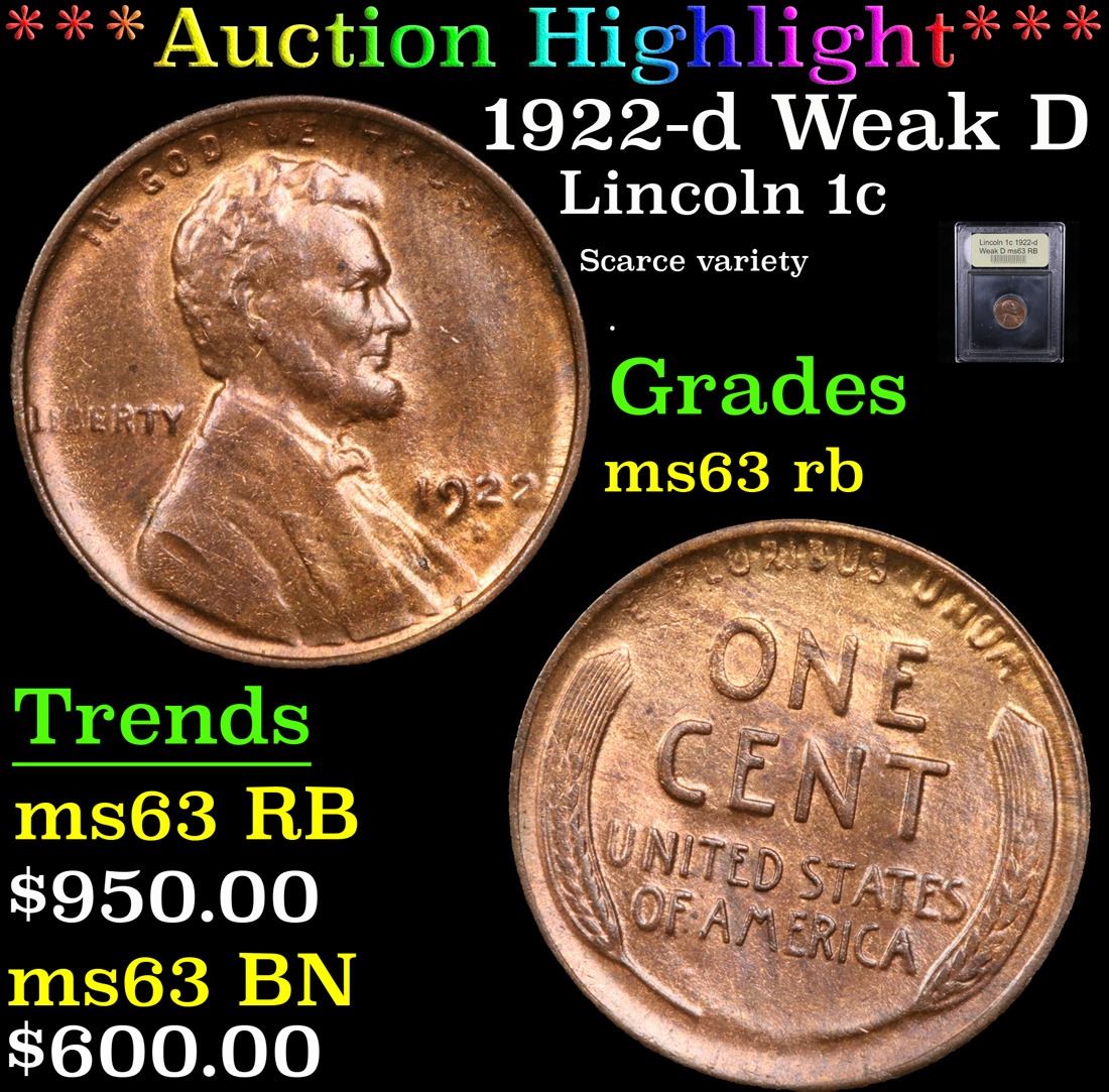***Auction Highlight*** 1922-d Weak D Scarce variety . Lincoln Cent 1c Graded Select Unc RB By USCG. A Corey's Pick, Bid to Win, Don't let it get Away, you might not find its equal Coin