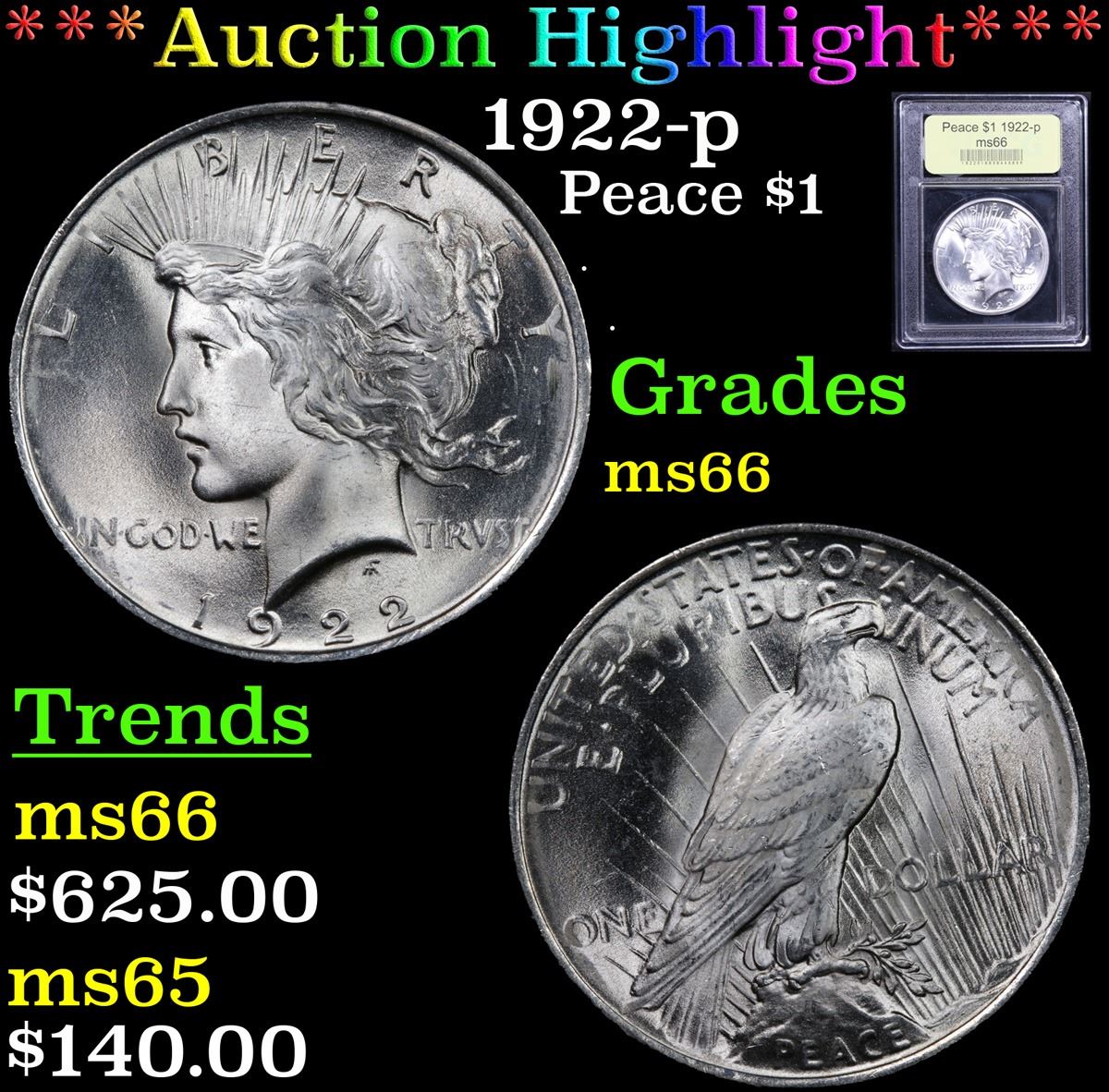 ***Auction Highlight*** 1922-p Peace Dollar $1 Graded GEM+ Unc By USCG. A Corey's Pick, Bid to Win, Don't let it get Away Coin