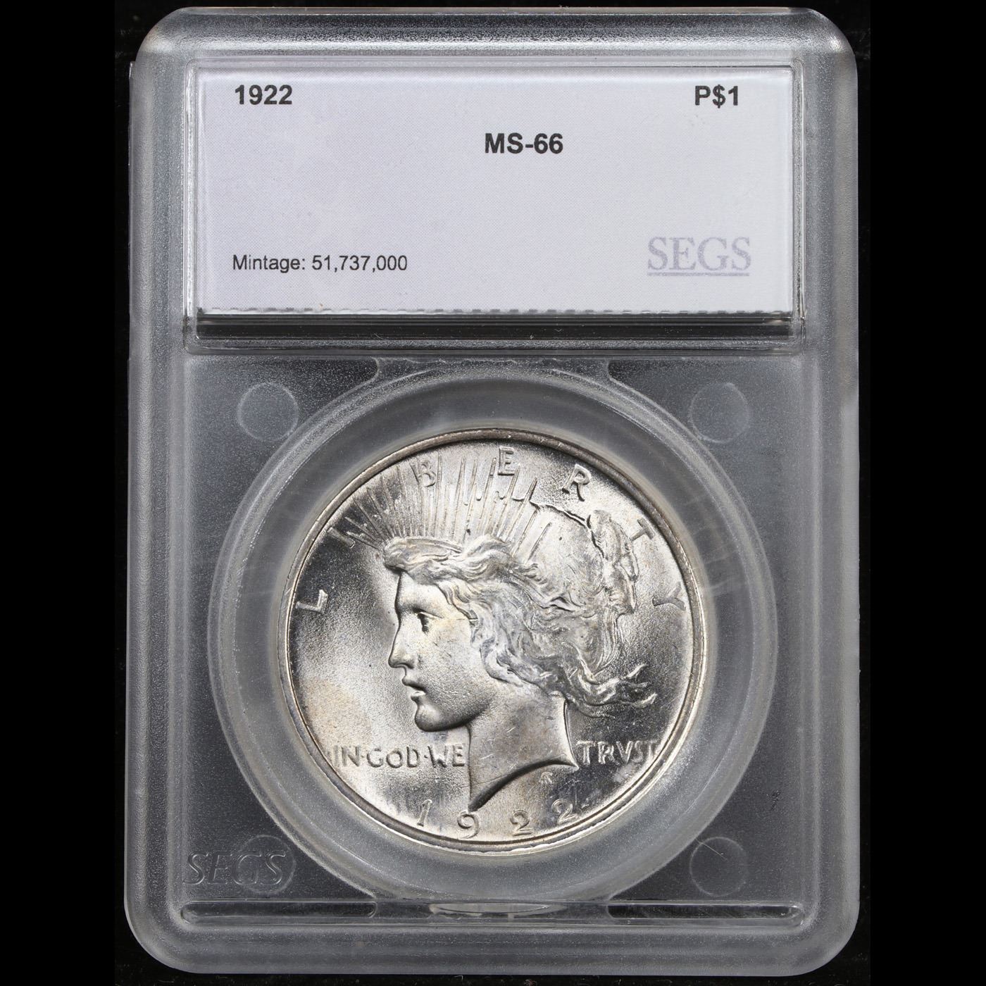 ***Auction Highlight*** 1922-p Peace Dollar $1 Graded ms66 By SEGS.