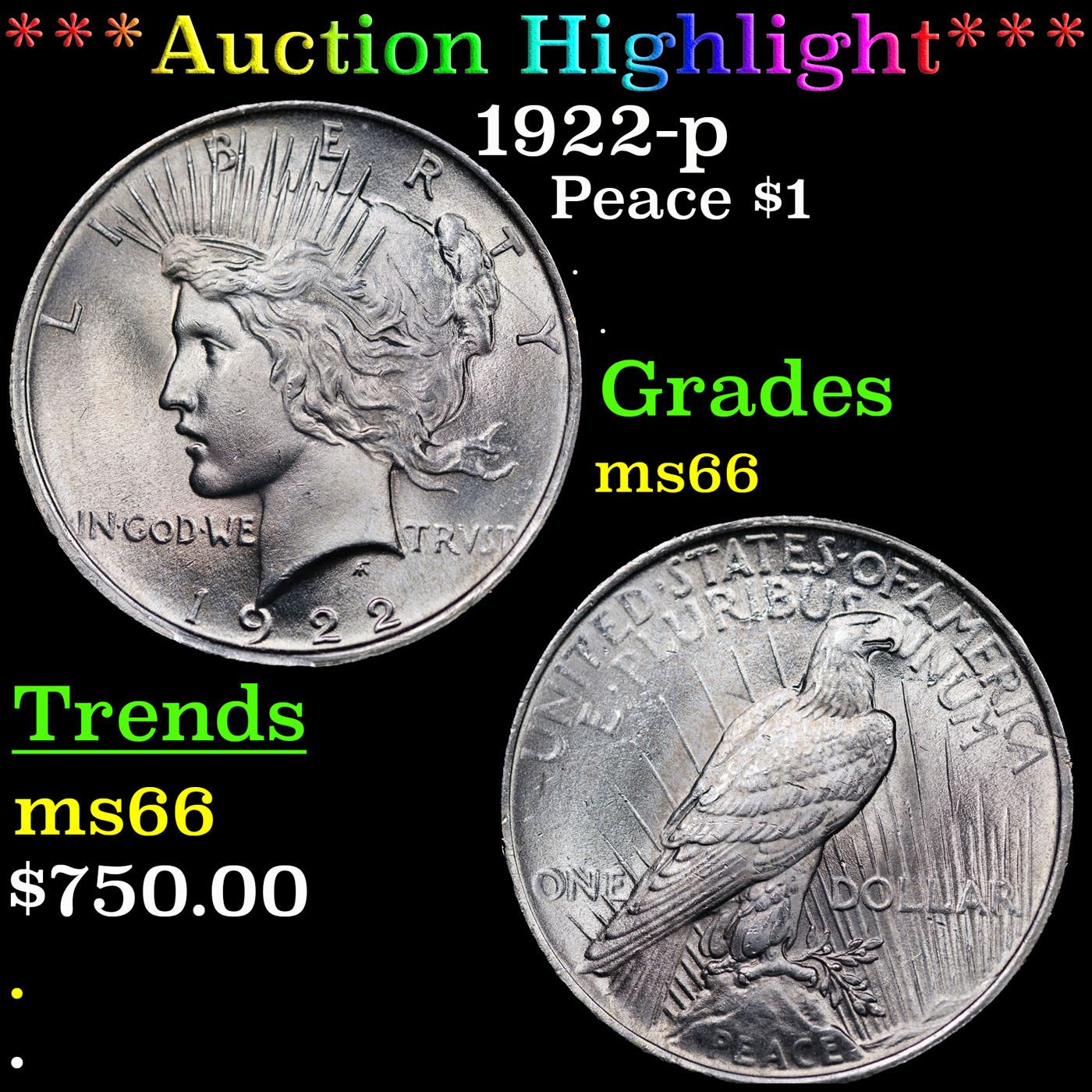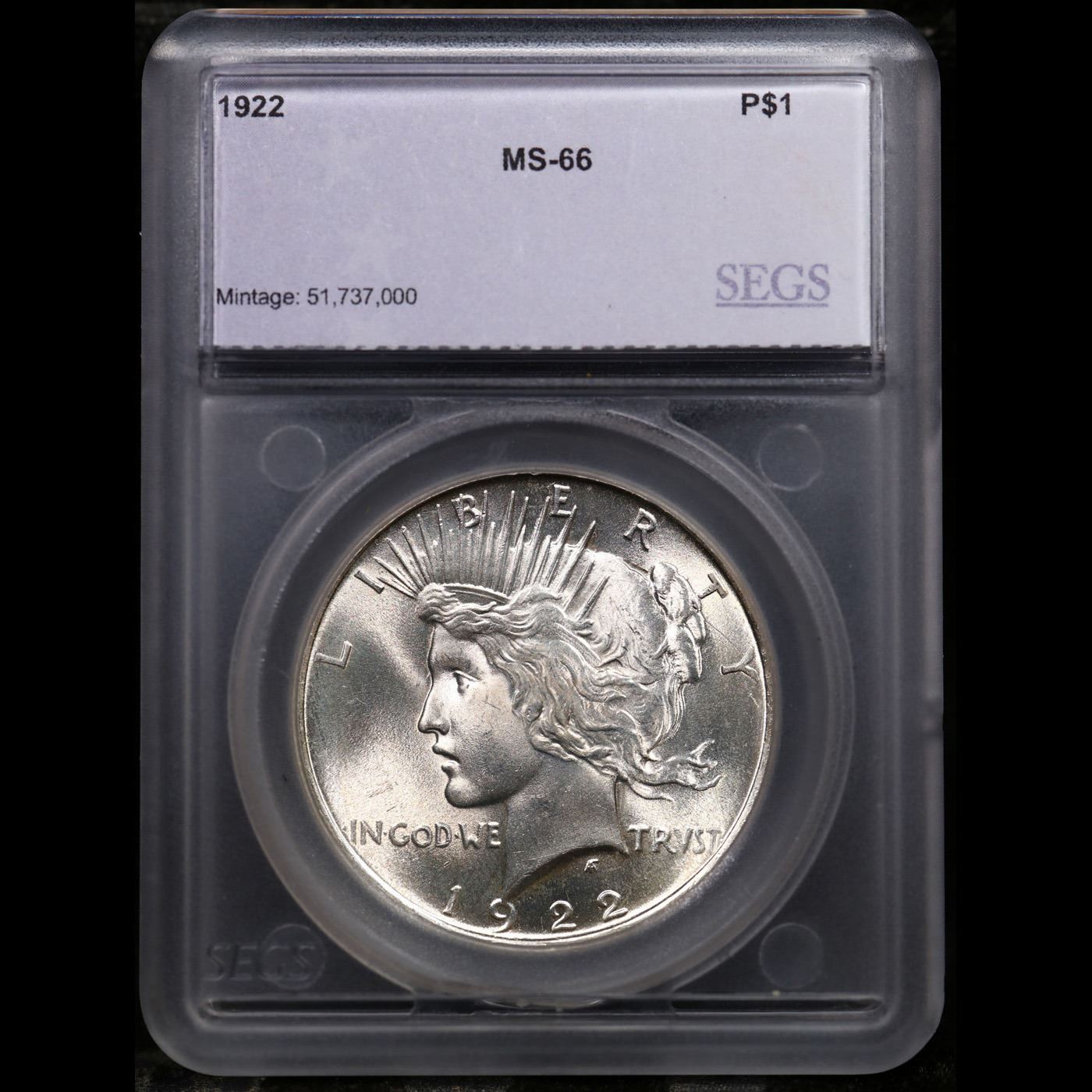 ***Auction Highlight*** 1922-p Peace Dollar $1 Graded ms66 By SEGS.