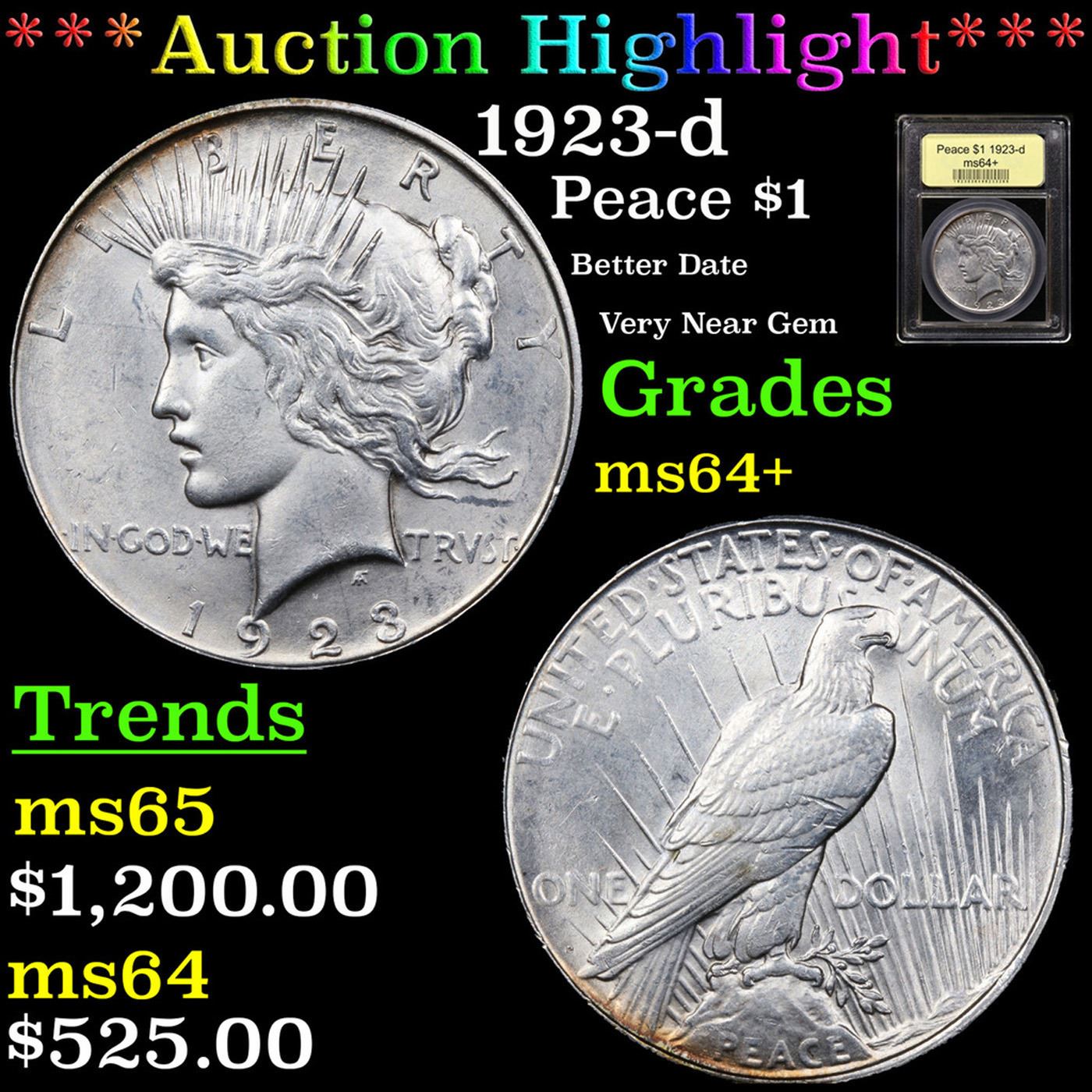 ***Auction Highlight*** 1923-d Peace Dollar $1 Graded Choice+ Unc BY USCG.