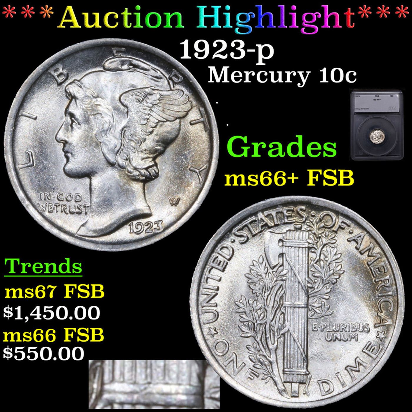 ***Auction Highlight*** 1923-p Mercury Dime 10c Graded ms66+ FSB BY SEGS.