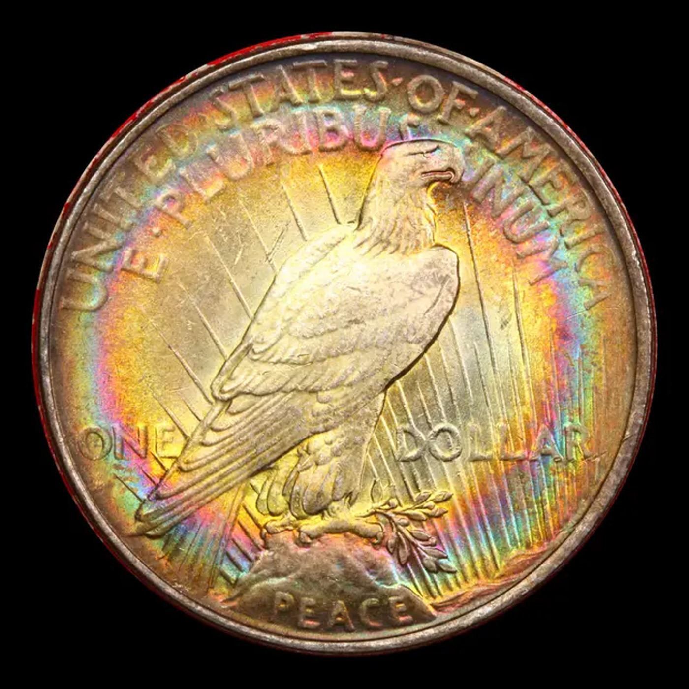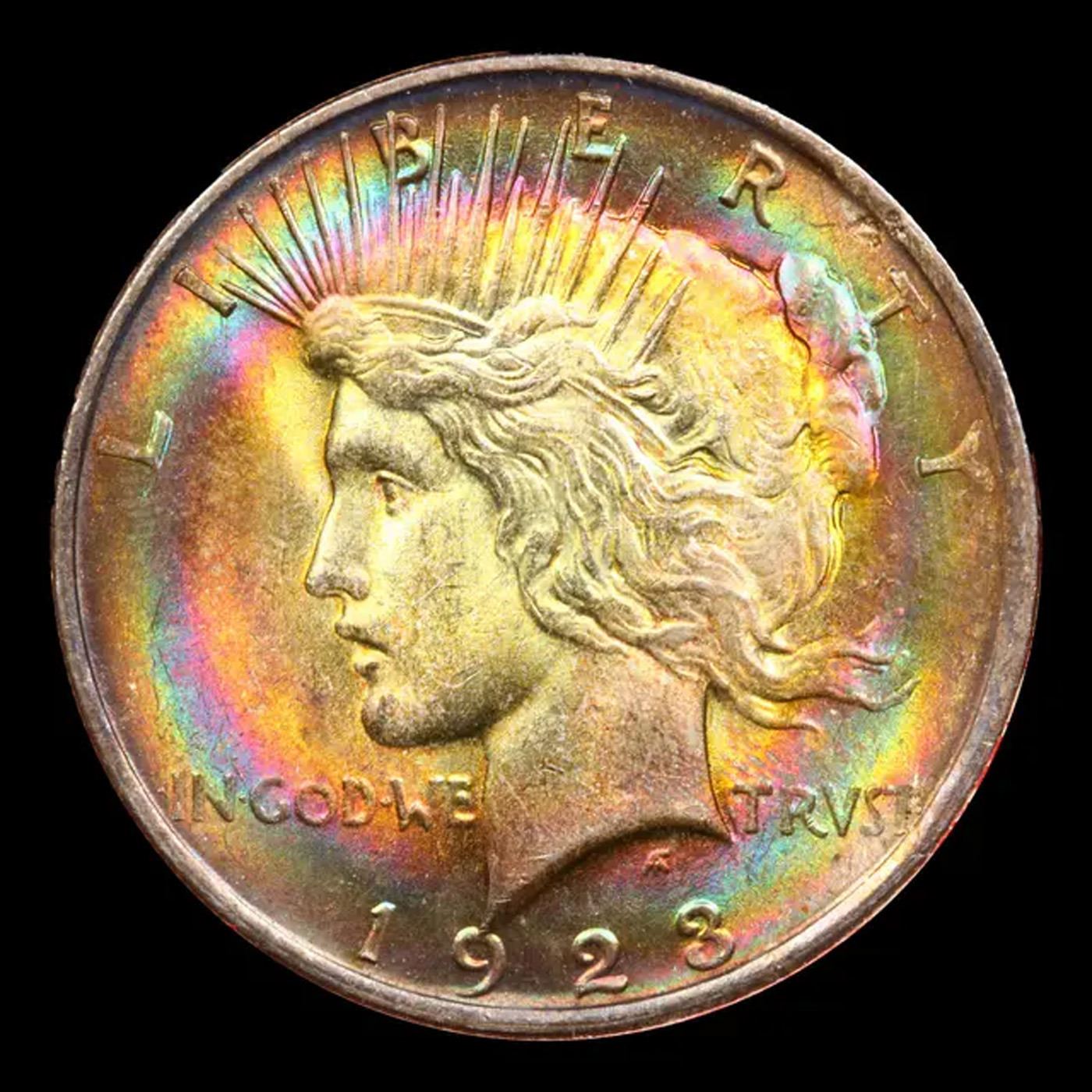 ***Auction Highlight*** 1923-p Peace Dollar Monster Rainbow TONED $1 Grades Gem+ Unc (fc)