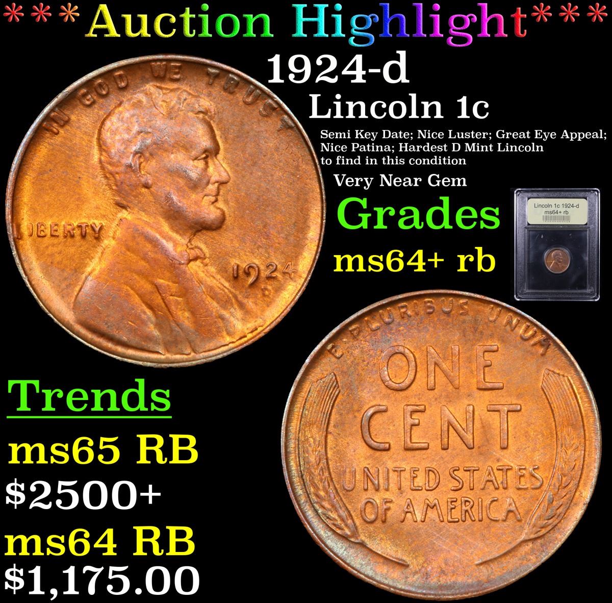 ***Auction Highlight*** 1924-d Lincoln Cent 1c Graded Choice+ Unc RB By USCG. A Corey's Pick, Bid to Win, Don't let it get Away Coin
