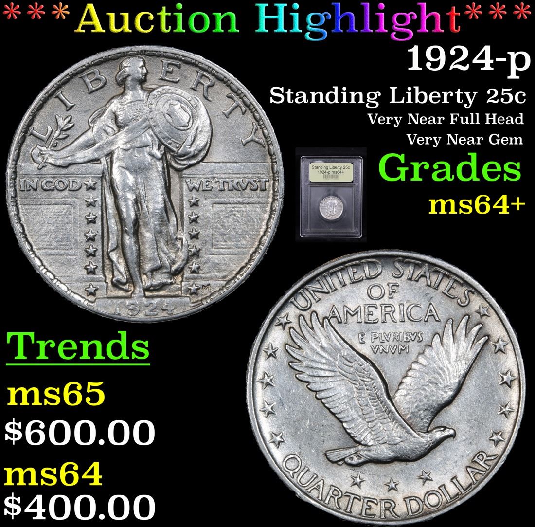 ***Auction Highlight*** 1924-p Very Near Full Head Very Near Gem Standing Liberty Quarter 25c Graded Choice+ Unc By USCG.