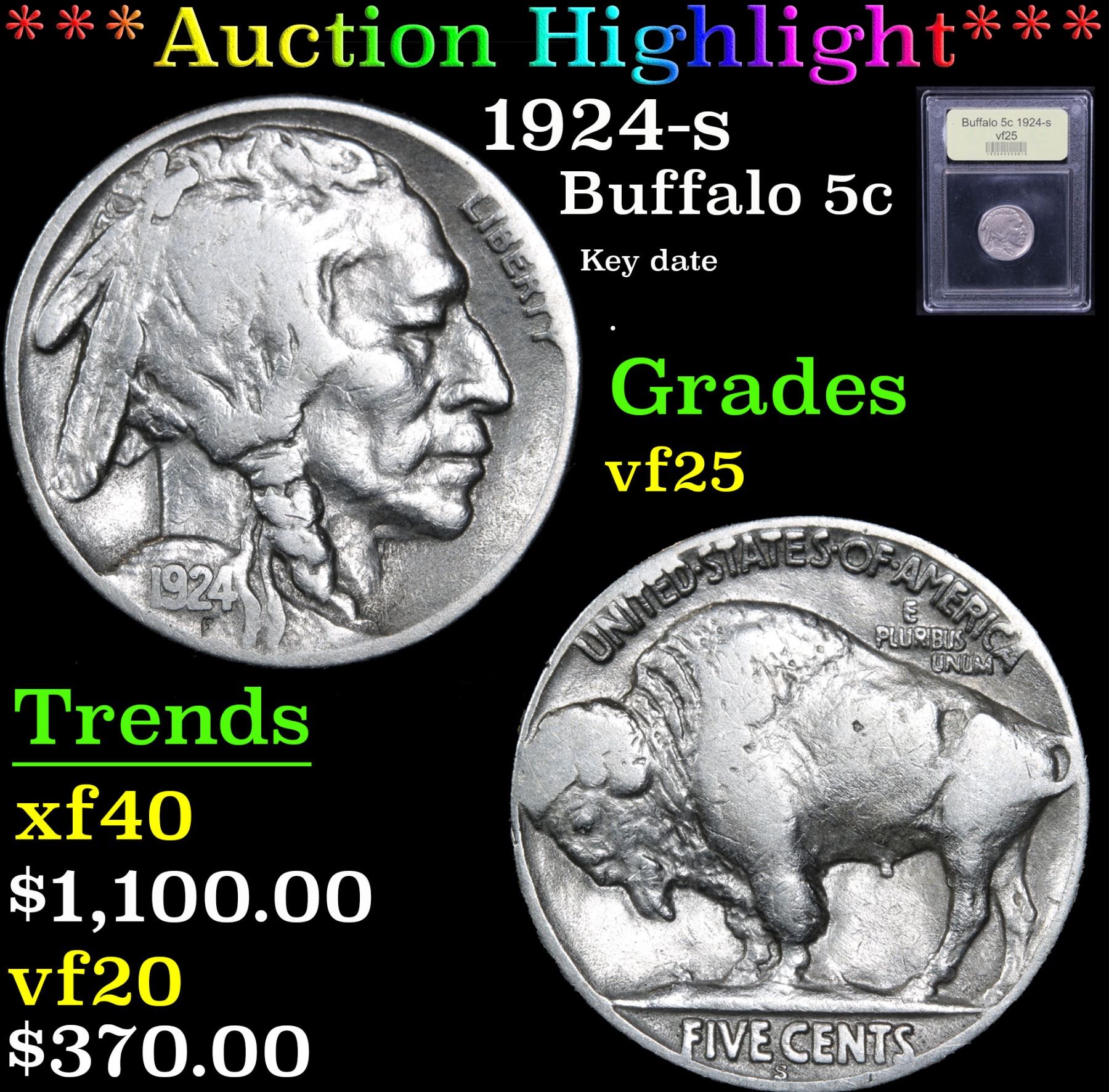 ***Auction Highlight*** 1924-s Buffalo Nickel 5c Graded vf+ By USCG. Key date