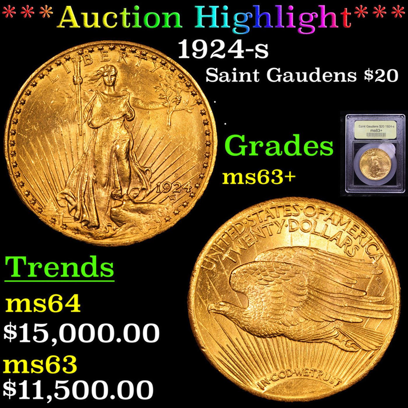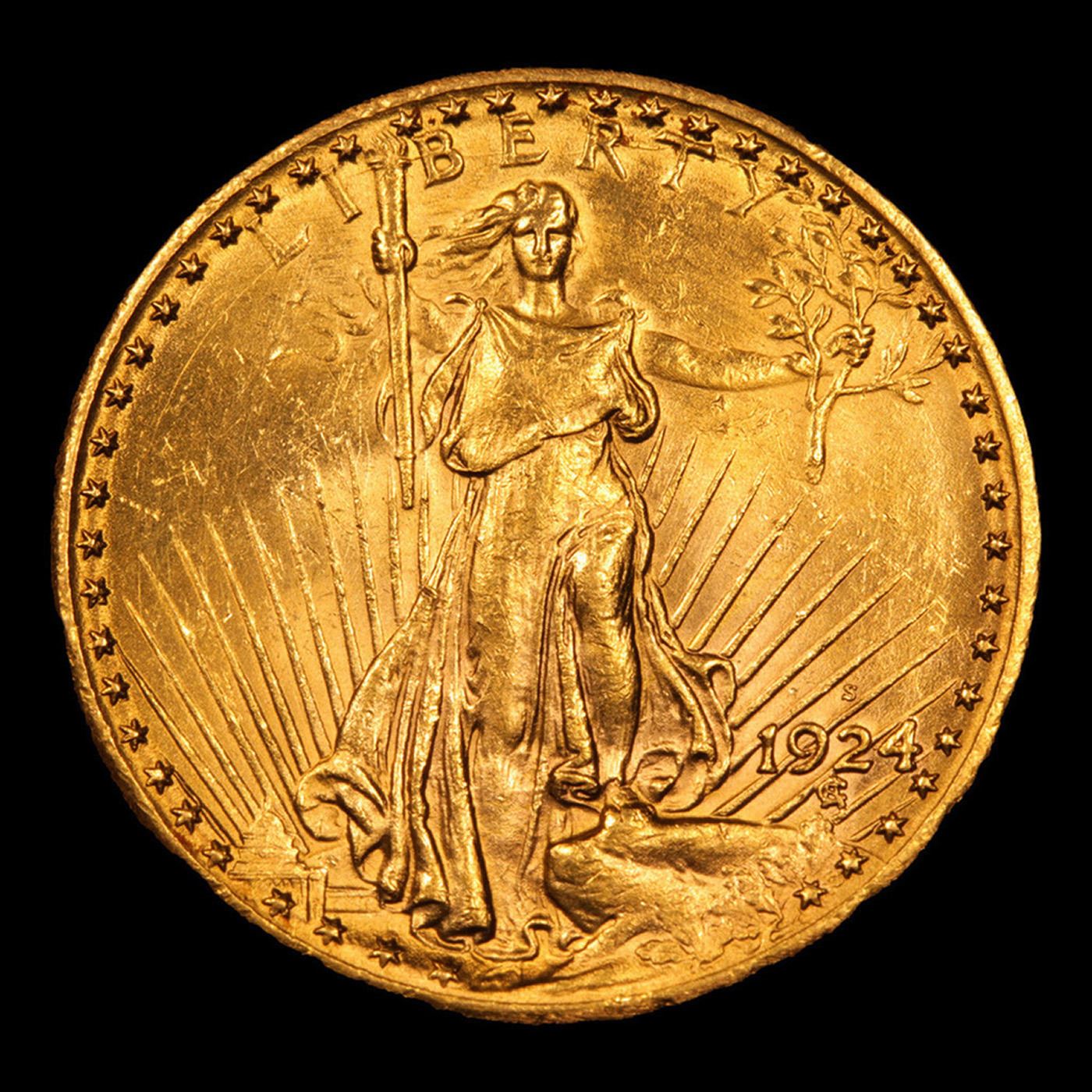 ***Auction Highlight*** 1924-s Gold St. Gaudens Double Eagle $20 Graded Select+ Unc by USCG.