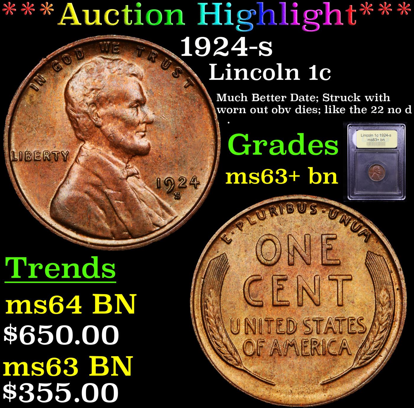 ***Auction Highlight*** 1924-s Lincoln Cent 1c Graded Select+ Unc BN By USCG.