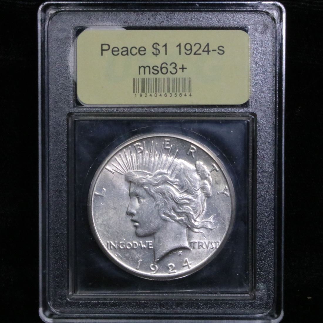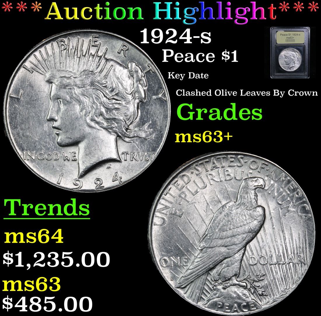 ***Auction Highlight*** 1924-s Key Date Clashed Olive Leaves By Crown Peace Dollar $1 Graded Select+ Unc By USCG.