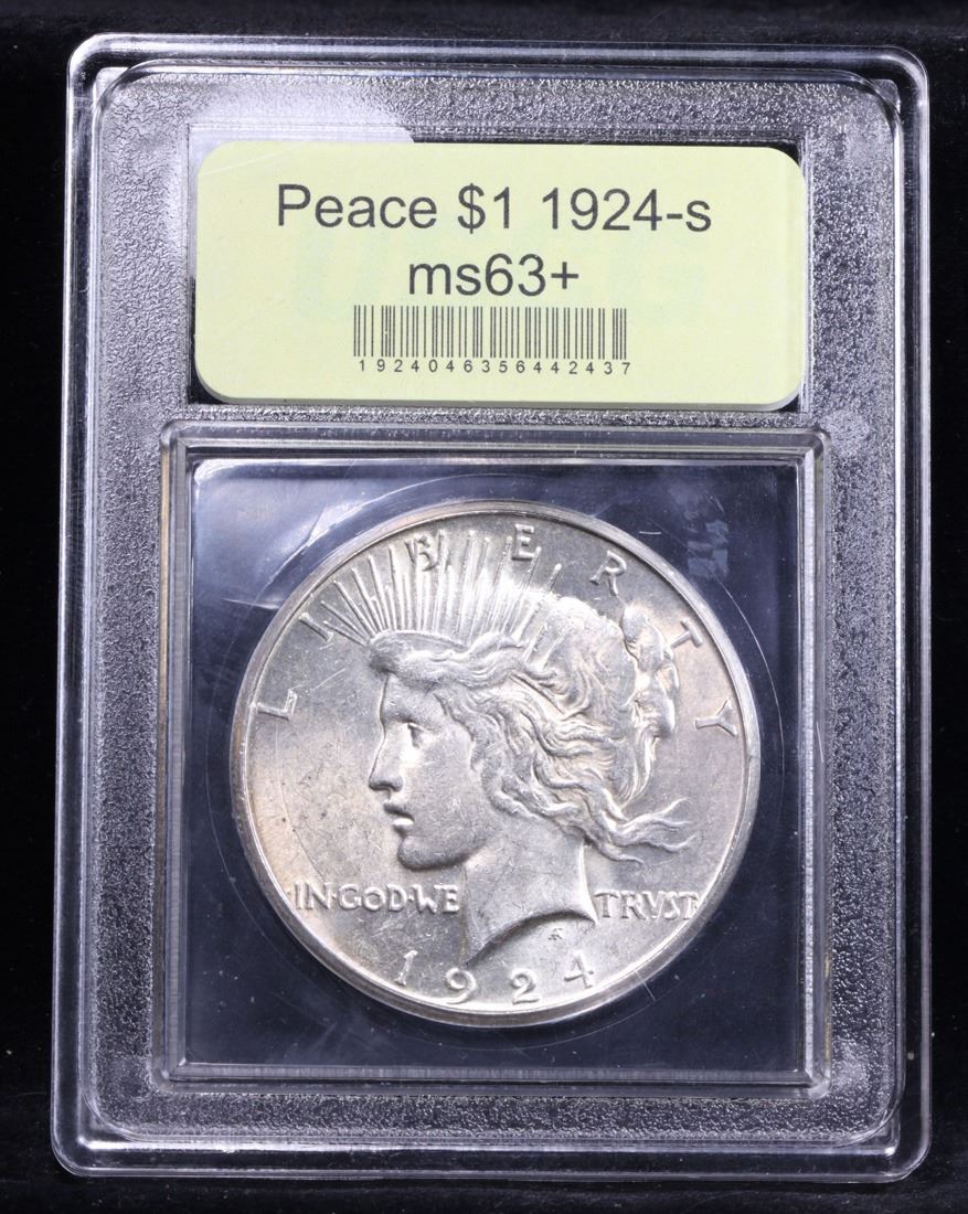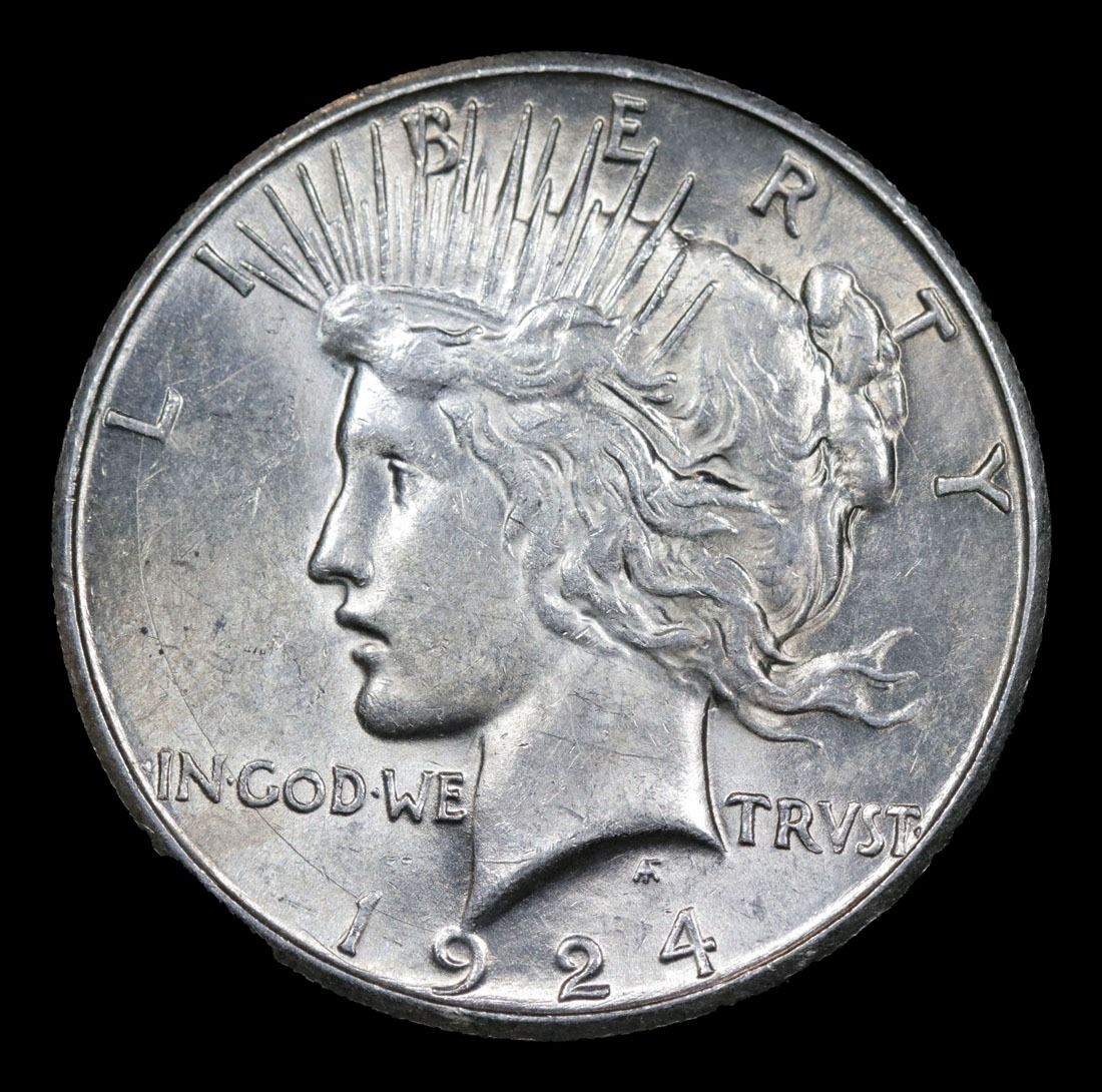 ***Auction Highlight*** 1924-s Key Date Die Crack From L to 9 In Date Peace Dollar $1 Graded Select+ Unc By USCG. A Corey's Pick
