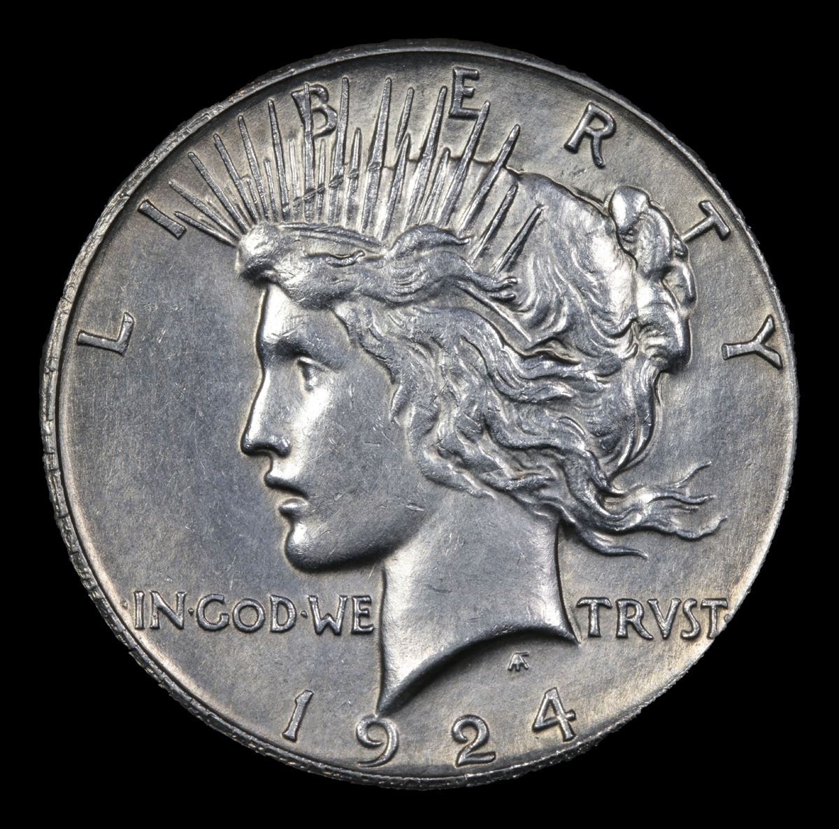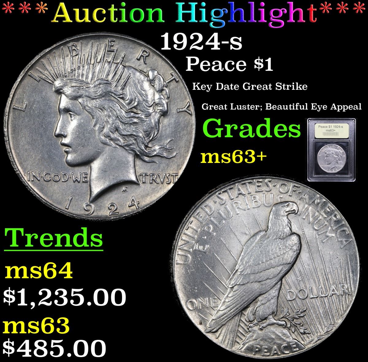 ***Auction Highlight*** 1924-s Key Date Great Strike Great Luster; Beautiful Eye Appeal Peace Dollar $1 Graded Select+ Unc By USCG. 0