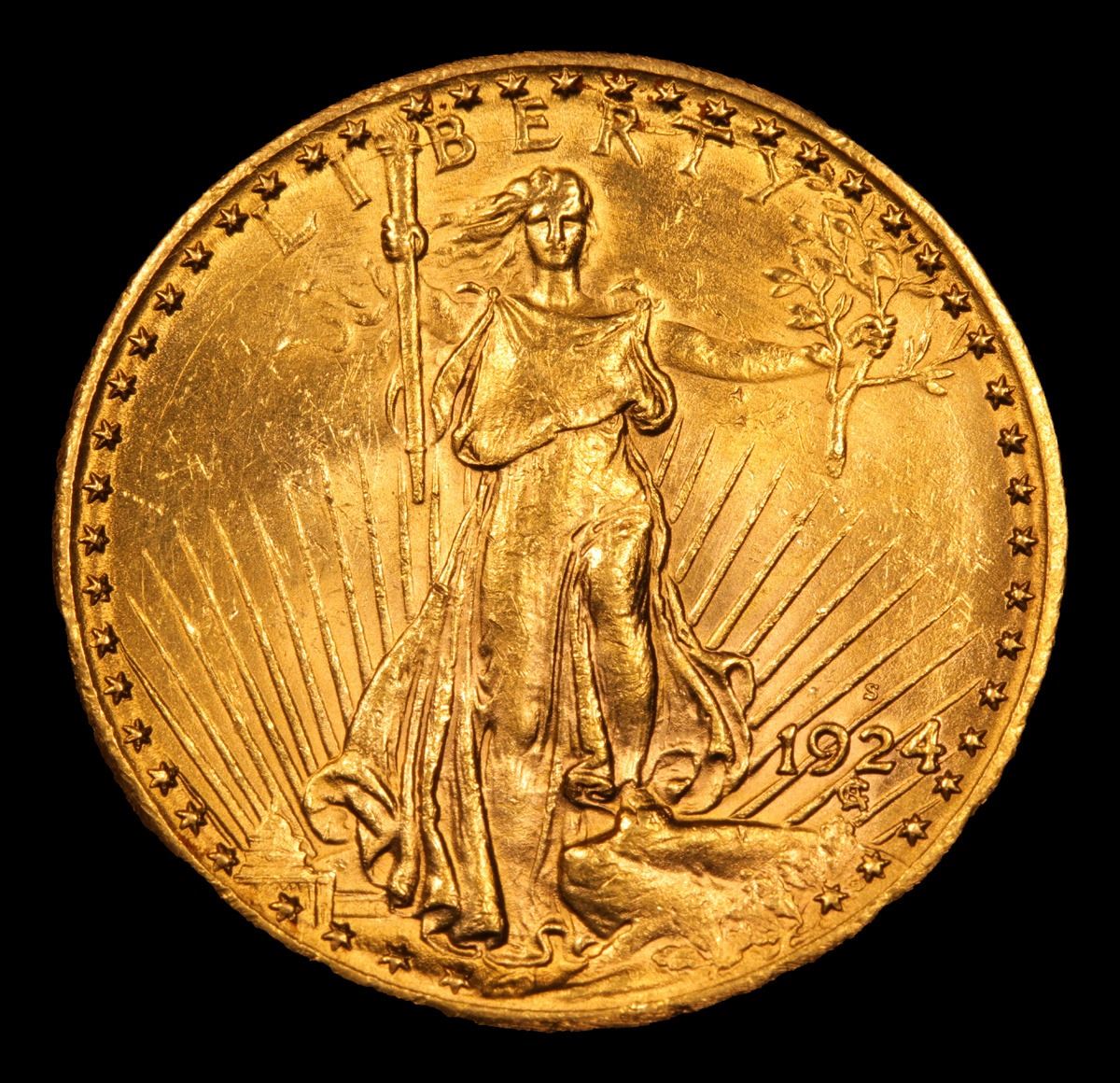 Up for Auction is a Lustrous 1924-s Key Date Saint-Gaudens Gold $20 Double Eagle