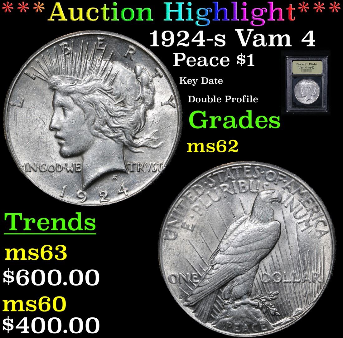 ***Auction Highlight*** 1924-s Vam 4 Key Date Double Profile Peace Dollar $1 Graded Select Unc By USCG.