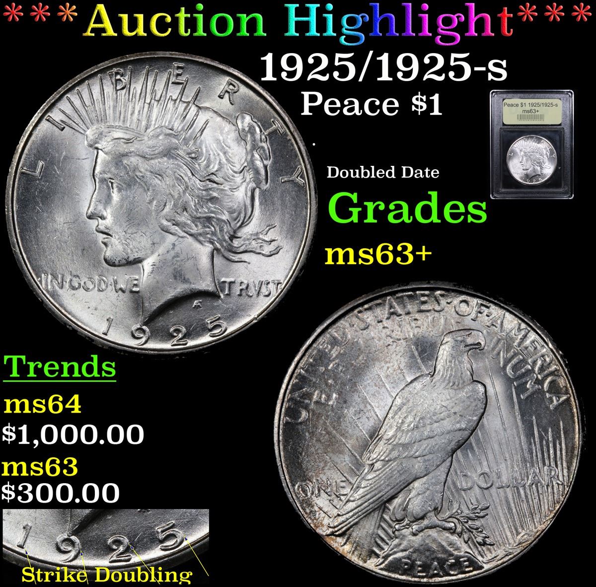 ***Auction Highlight*** 1925/1925-s . Doubled Date Peace Dollar $1 Graded Select+ Unc By USCG. A Corey's Pick, Bid to Win Coin