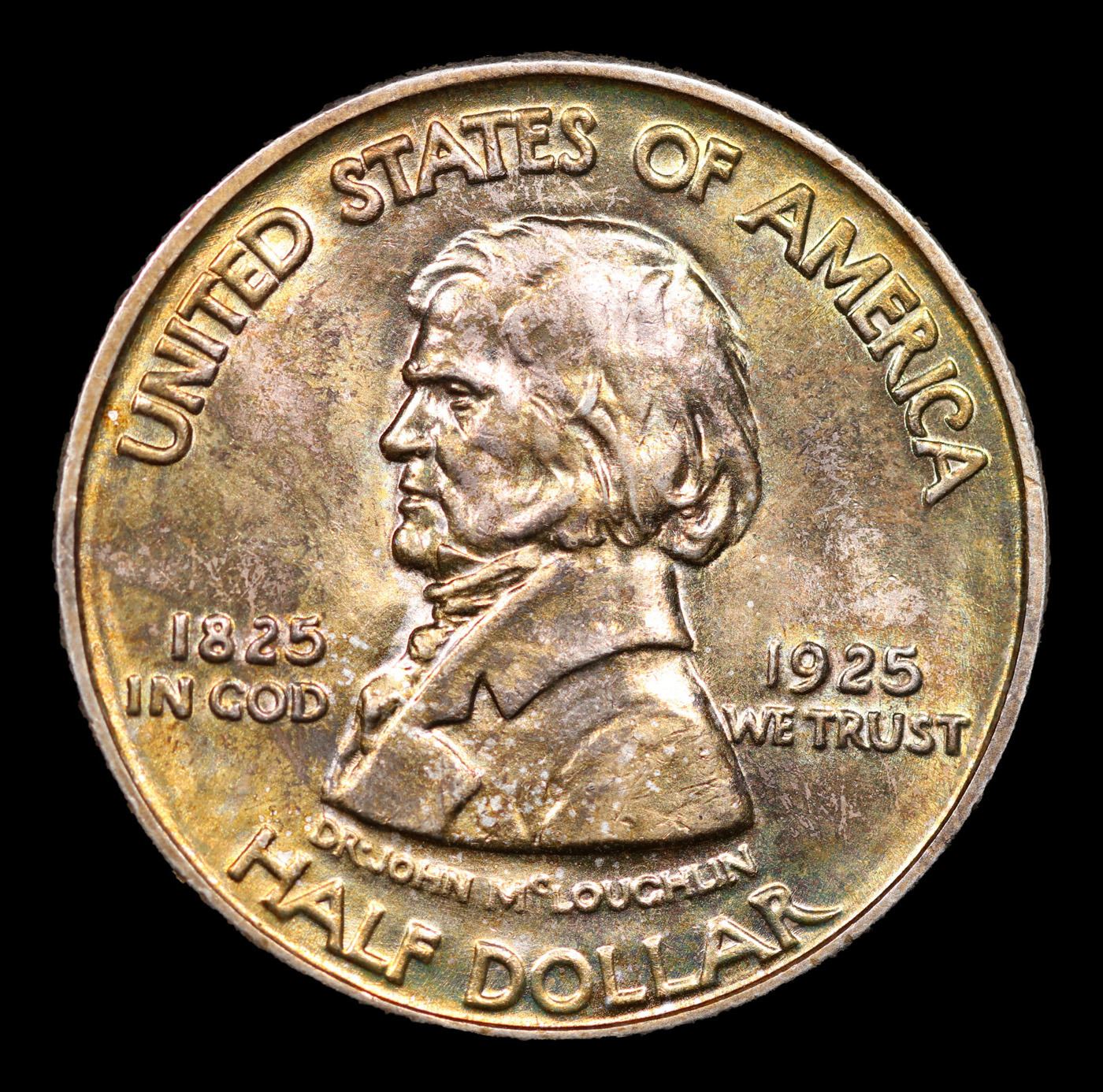 ***Auction Highlight*** 1925 Vancouver Old Commem Half Dollar 50c Graded ms66+ BY SEGS. The Vancouver Centennial had a very low mintage of 14,994. Wear first appears on McLoughlin’s bust, especially on the cheekbone and hair above the ear and on the knee on the reverse.