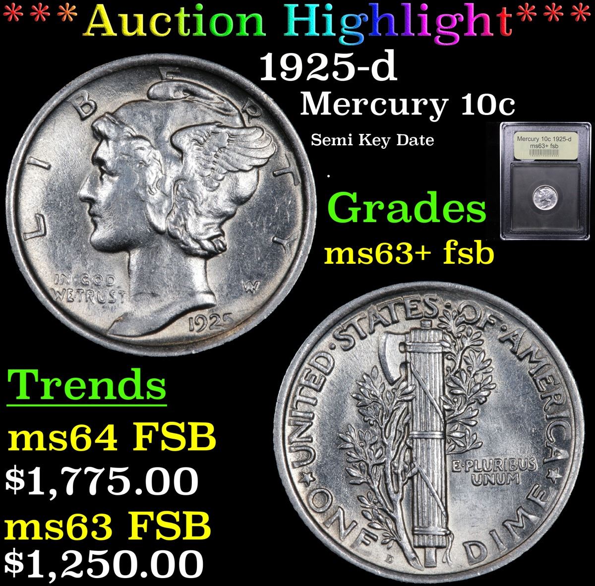 ***Auction Highlight*** 1925-d Mercury Dime 10c Graded Select Unc+ FSB By USCG. A Corey's Pick, Bid to Win, Don't let it get Away Coin