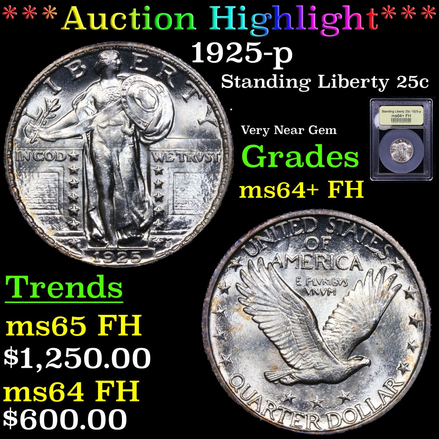 ***Auction Highlight*** 1925-p Standing Liberty Quarter 25c Graded Choice Unc+ FH By USCG.