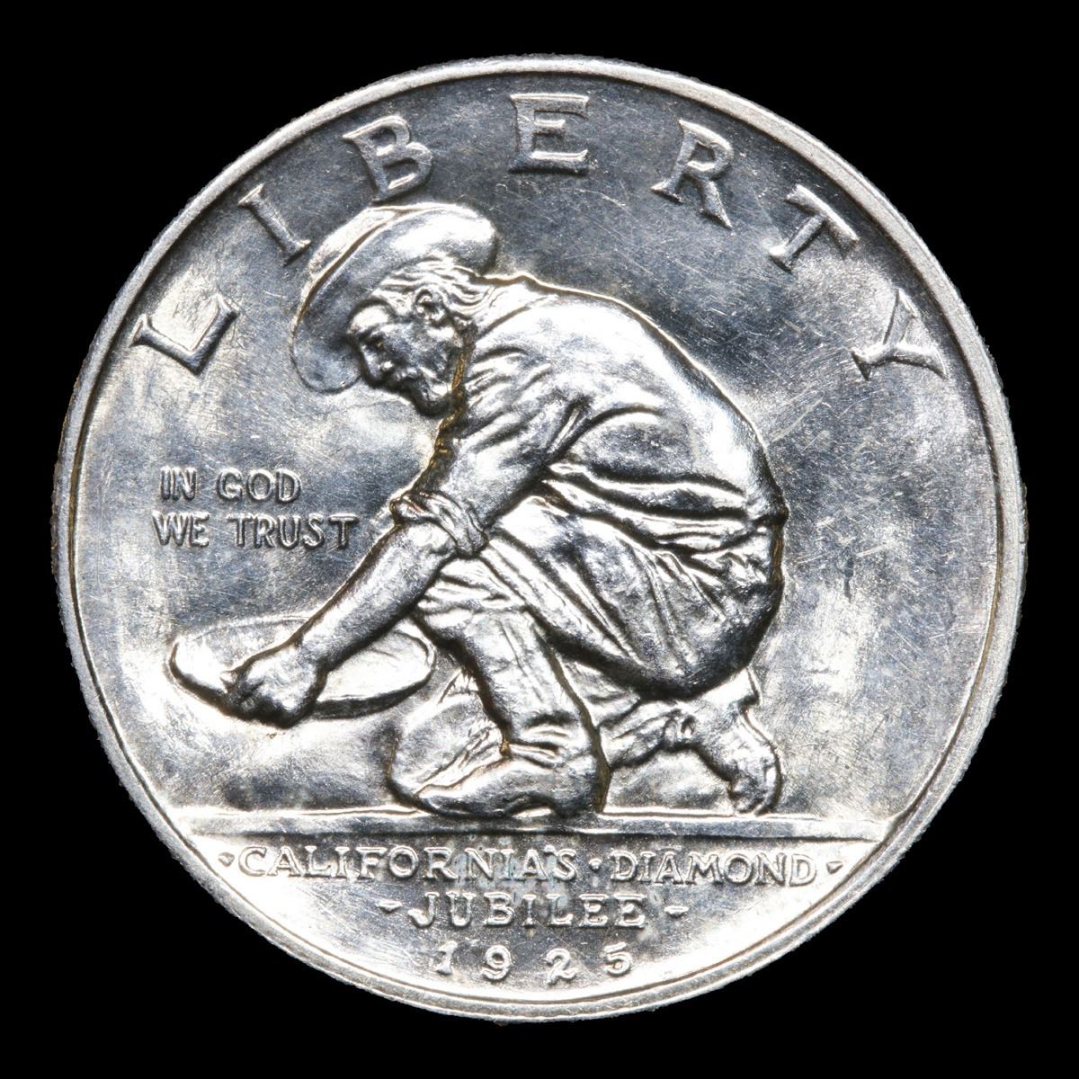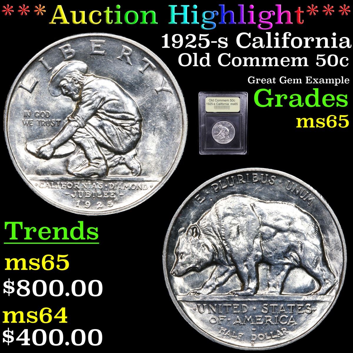 ***Auction Highlight*** 1925-s California . Great Gem Example Old Commem Half Dollar 50c Graded GEM Unc By USCG. The High Points of the Coin are the Bear's Shoulder and Leg and the Miner's Back, Shoulder and Shirtsleeve. The Coin was a Great Success when First Issued and is Still Sought After Today. A Corey's Pick, Bid to Win Coin